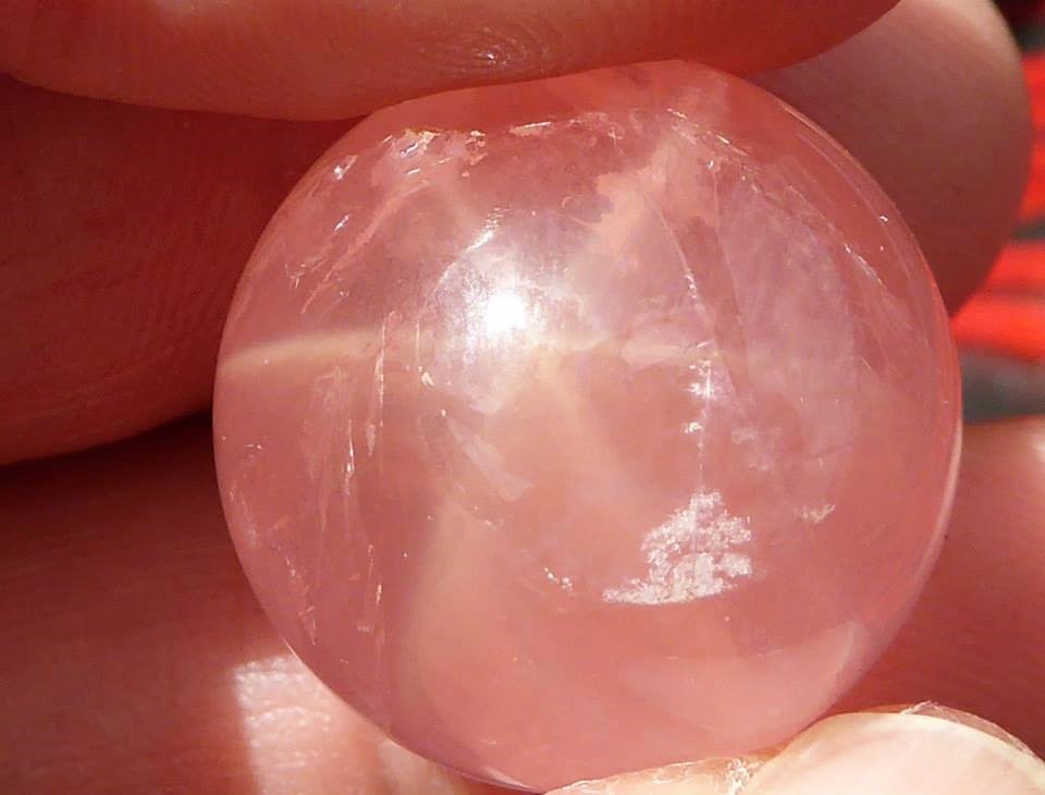 Mineralogisch wie Bergkristall nur durch Eisen rosa gefärbt und Mikroskopisch kleine Rutilnadeln die bei dem Stein so dicht liegen, erhält der Stein im Licht bei einer runden Politur einen sternförmigen Schiller.