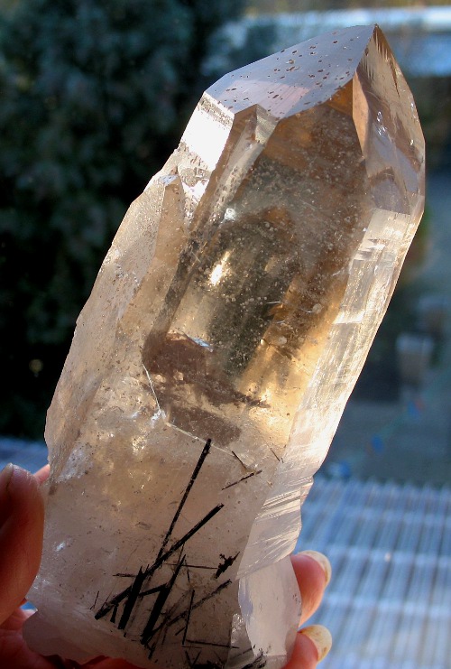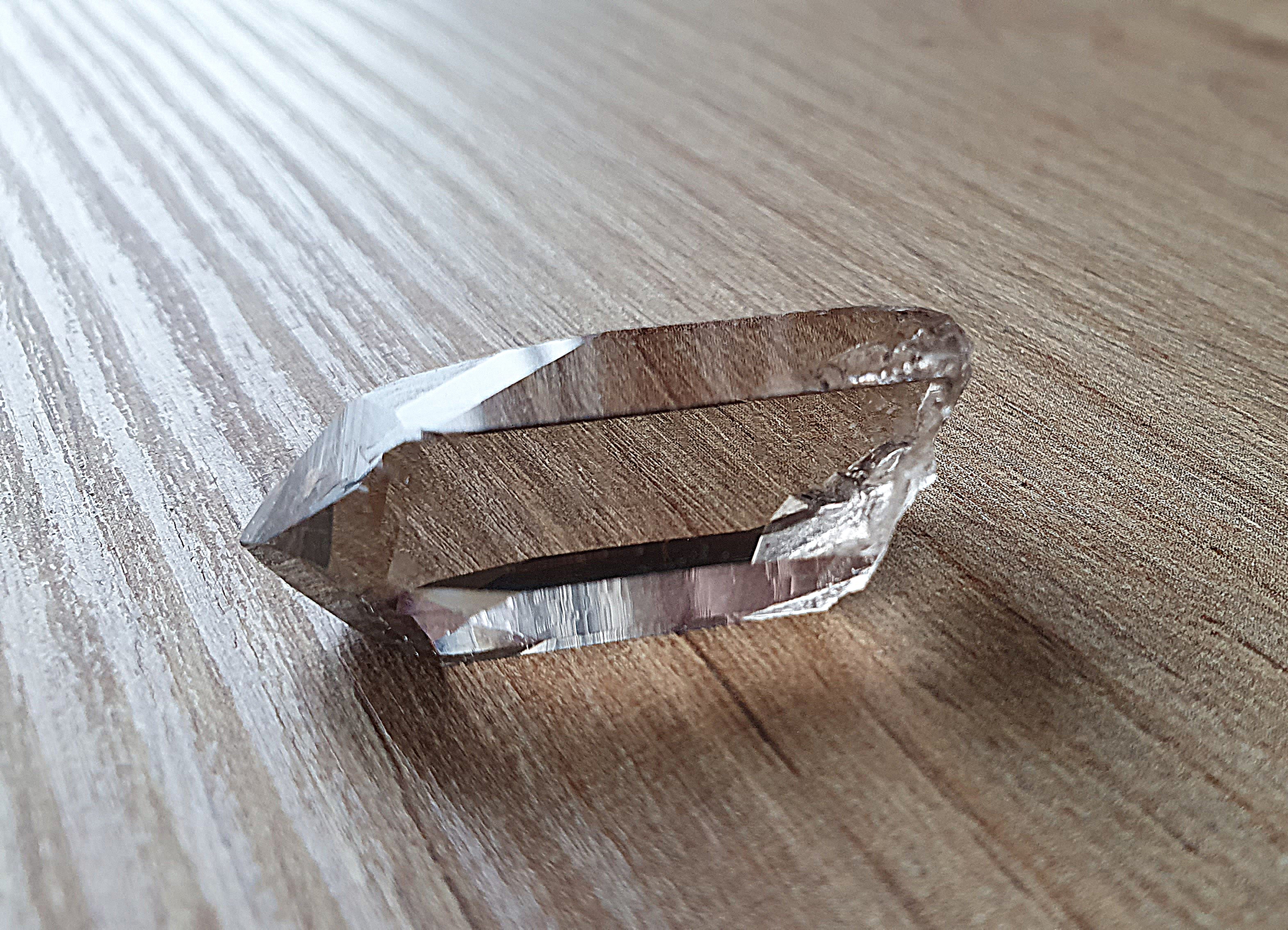Beide Seiten meines hellen Rauchquarzes. In Wirklichkeit ist er noch heller, man sieht erst, das es kein Bergkristall ist, wenn man ihn auf einen weißen Untergrund legt. Leider kann meine Kamera das nicht einfangen.