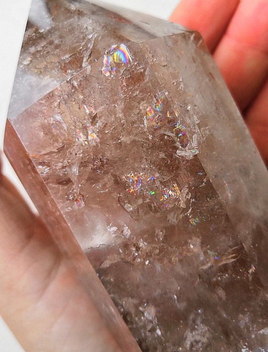 Mein schöner Rauchquarz-Kristall, der recht viele Regenbögen intus hat.