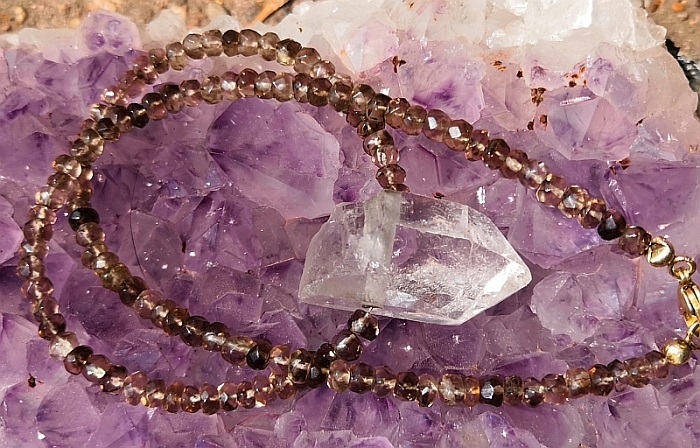 Anwendung des Rauchquarzes als Heilstein: Über einen längeren Zeitpunkt als Kette oder Anhänger und auch als Taschenstein getragen.