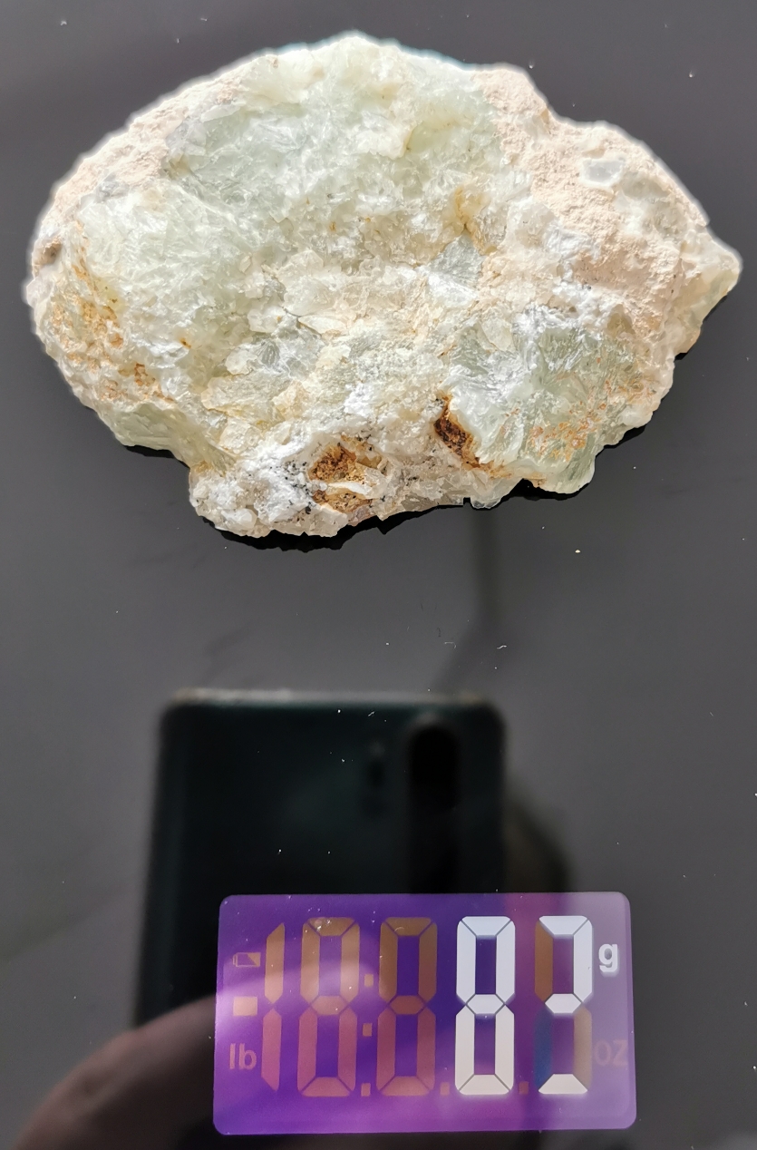 Ich biete hier ein Prehnit aus Namibia an. Er hat 82 bis 83 Gram bei 7,8*5,5*1,3 cm