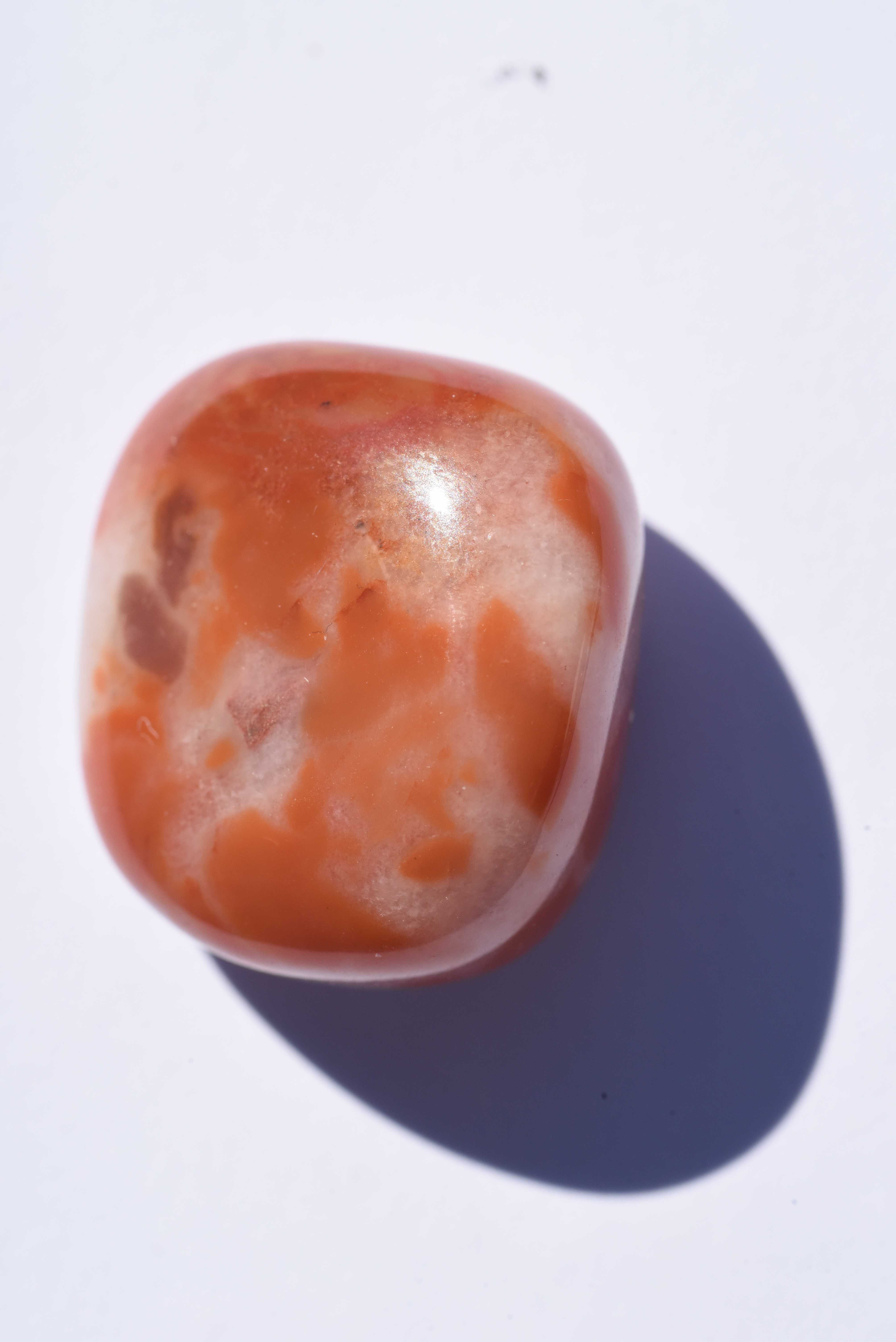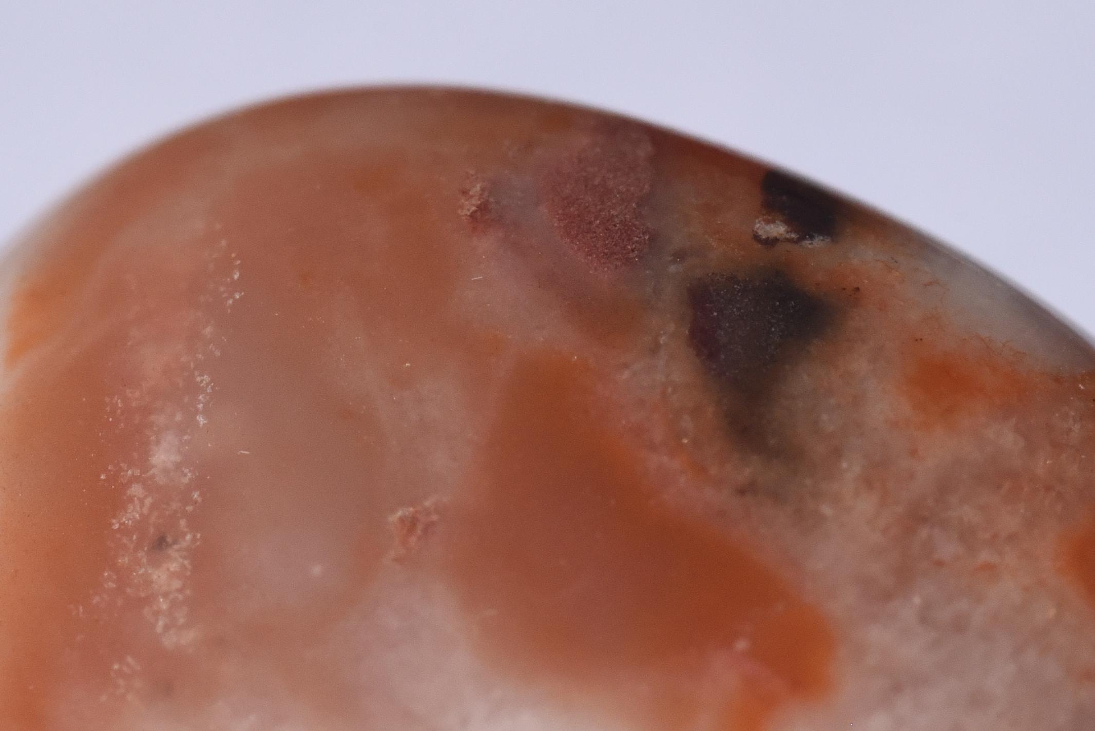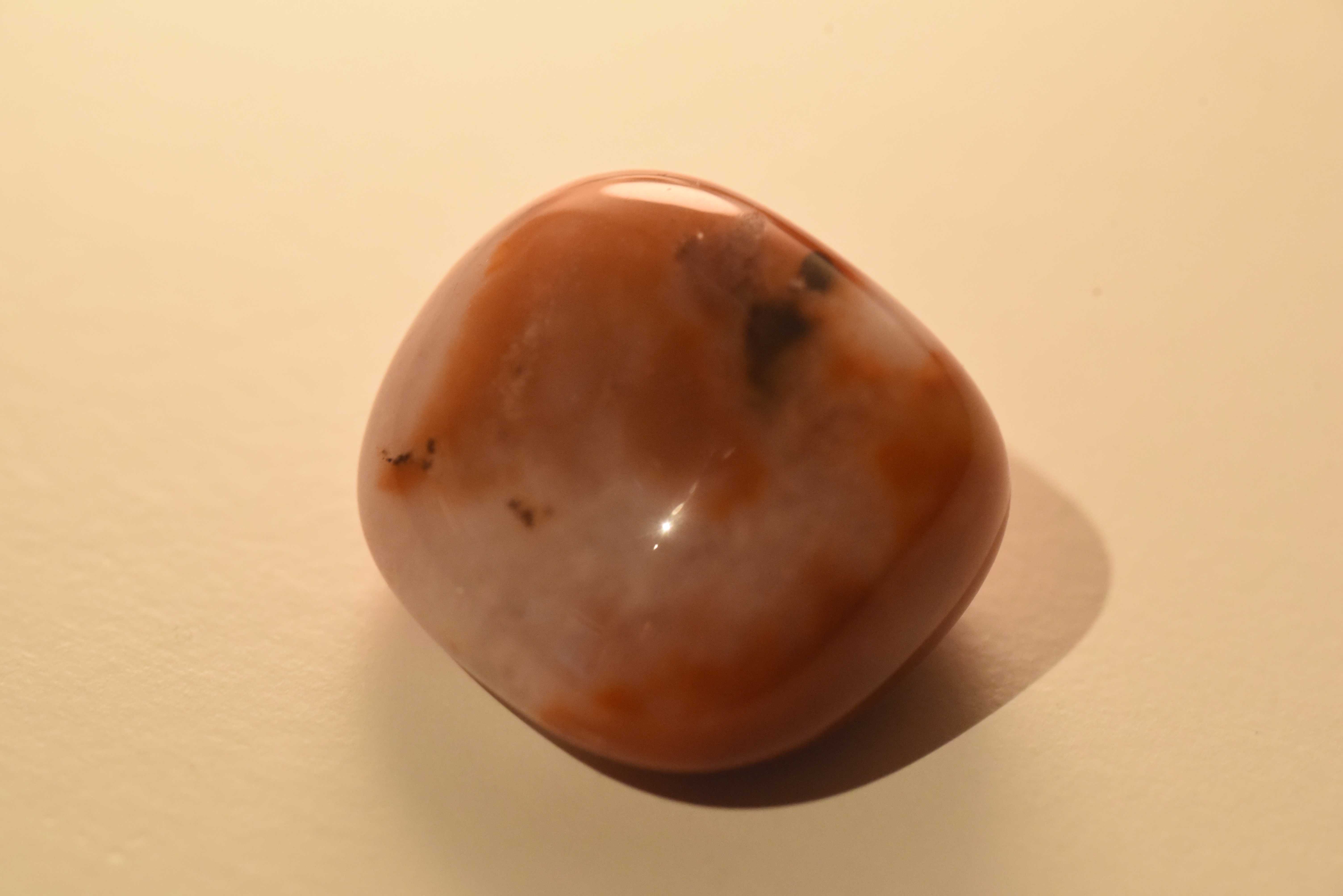 Diesen Stein hatte ich in einem Sack voller verschiedener Steine erhalten und ich kann ihn nicht eindeutig identifizieren. Könnte es sich um ein Karneol mit Quarz handeln?