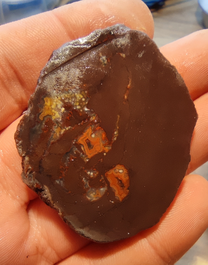 Etwas hoffnungsvoller machte ich mich dann auf den Weg zu den Körbchen mit Trommelsteinen, auf der Suche nach Rubellit und Charoit. Und fand dabei, wenn auch völlig ungeplant, Moqui Marbles