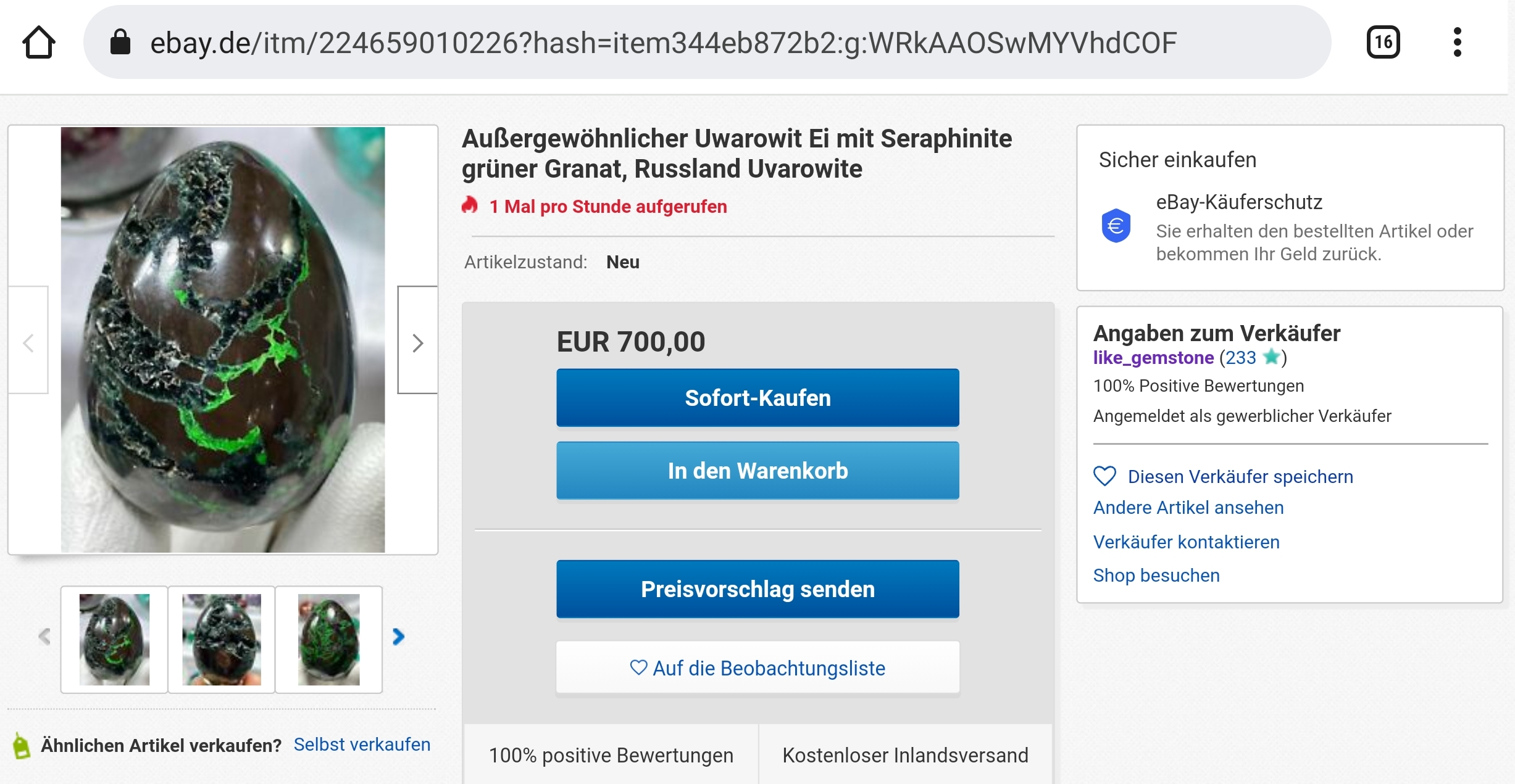 Ein Uwarowit Ei zu finden ist eh schon sehr schwer aber dann auch noch zwei vom gleichen Anbieter mit Calcit oder mit Seraphinite als Zugabe? Das ist wirklich außergewöhnlich!