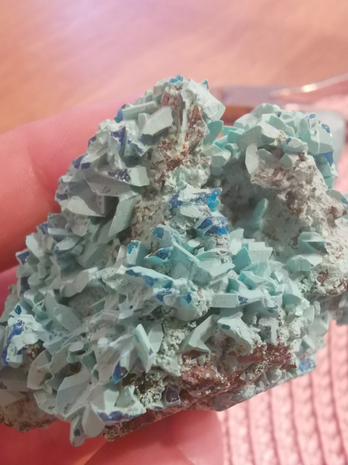 Zum Vergleich, hier mein Shattuckit, Chrysokoll, Quarz