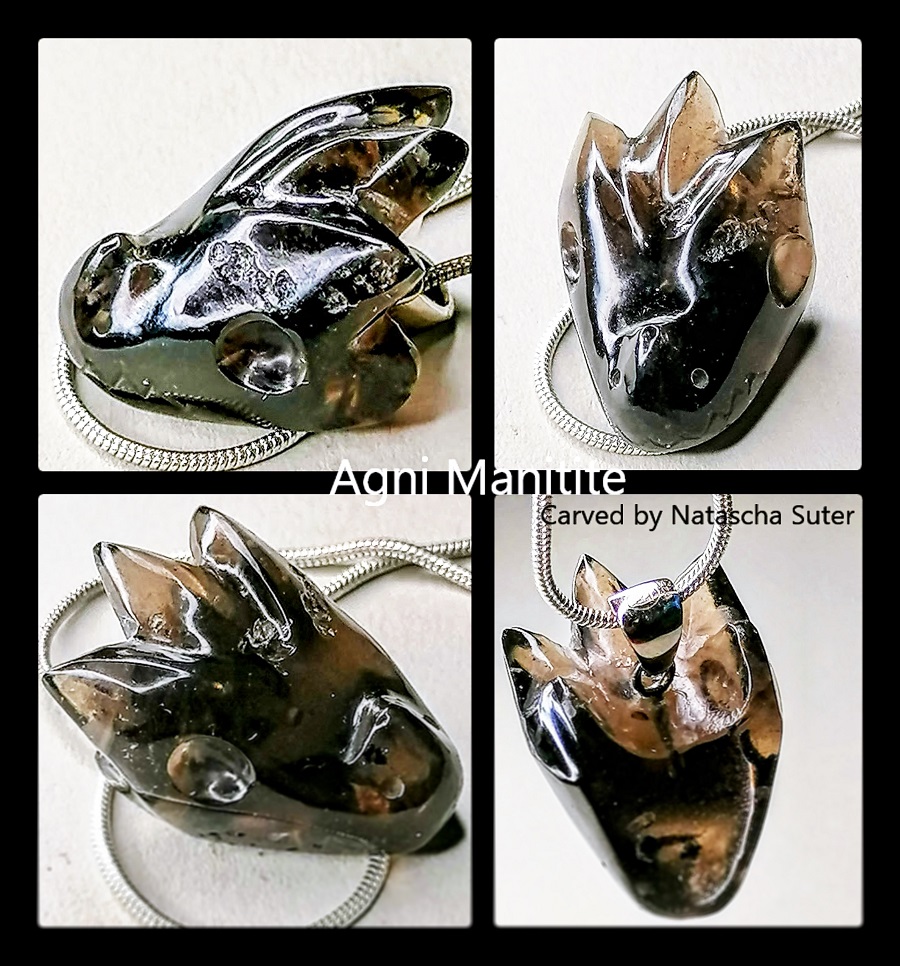 Agni Manitit wird als ein seltener Tektit verkauft, auch "Feuerperle" oder „Cintamani Stein“ genannt, der auf der Insel Java, Gunung Bromo, Indonesien angeblich unter Wasser gefunden werden soll. Die Farbe reicht von dunkelgrau bis fast schwarz, aber bei Beleuchtung finden wir eher rauchige grau .. braune. Der Name wurde abgeleitet von dem alten Sanskrit-Begriff „agni mani“, was „Perle des göttlichen Feuers“ bedeutet.