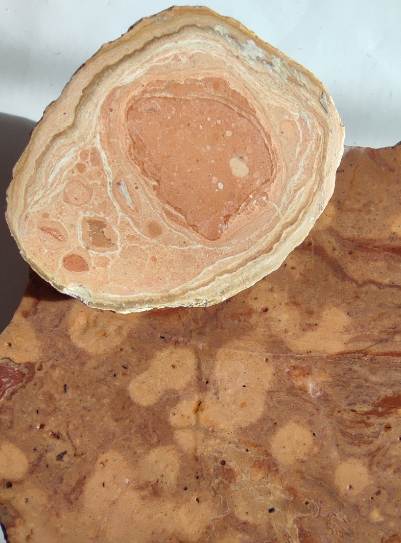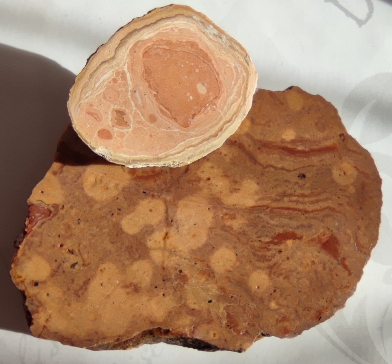 ich habe bei meinen gekauften Rhyolithen einen Stein dabei gehabt, der da bestimmt nicht dazu gehörte. Da er von außen mit diesen identisch aussieht, ist er vermutlich ungewollt mit darein gerutscht.