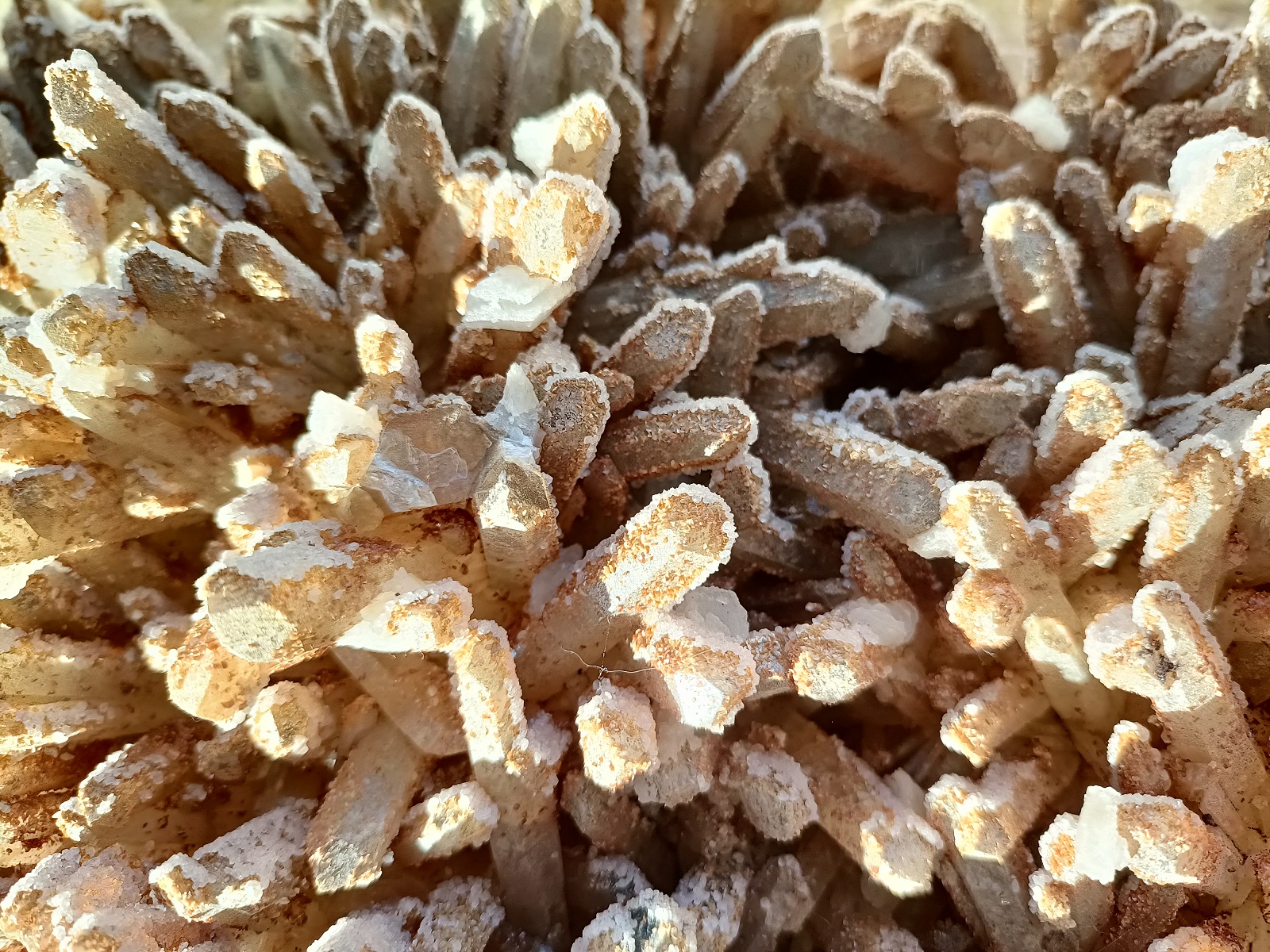Ich hab ein herrenloses Schildchen in einer Box bei mir gefunden, auf dem Quartz/Siderit/Calcit steht. Bin mir fast sicher, das Schildchen gehört zu dem Stein.