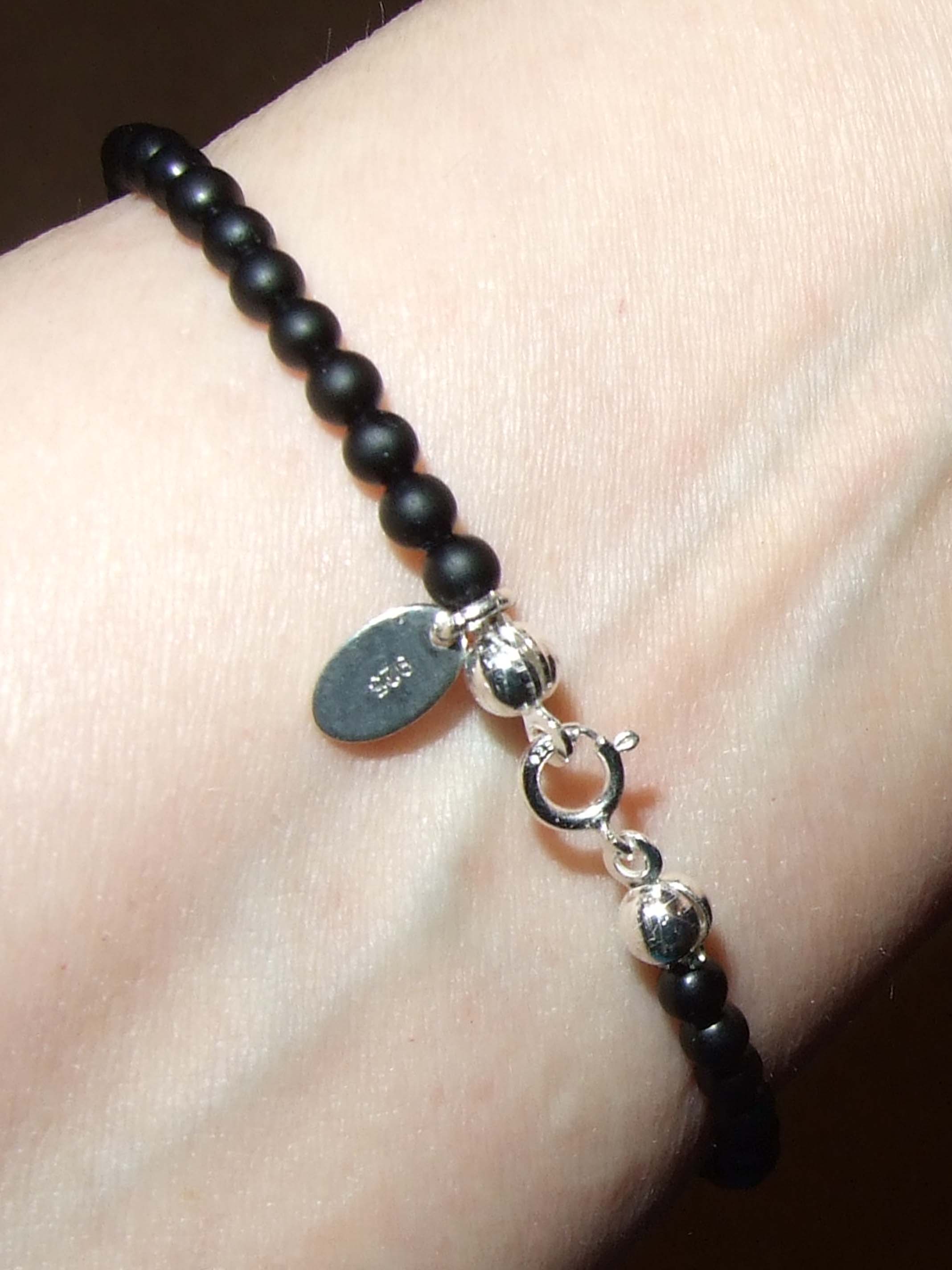 Hier mal ein Beispiel eines meiner Obsidian-Armbänder, auch aus 4 mm kleinen Kügelchen mit Juweliersdraht und Federringverschluss.