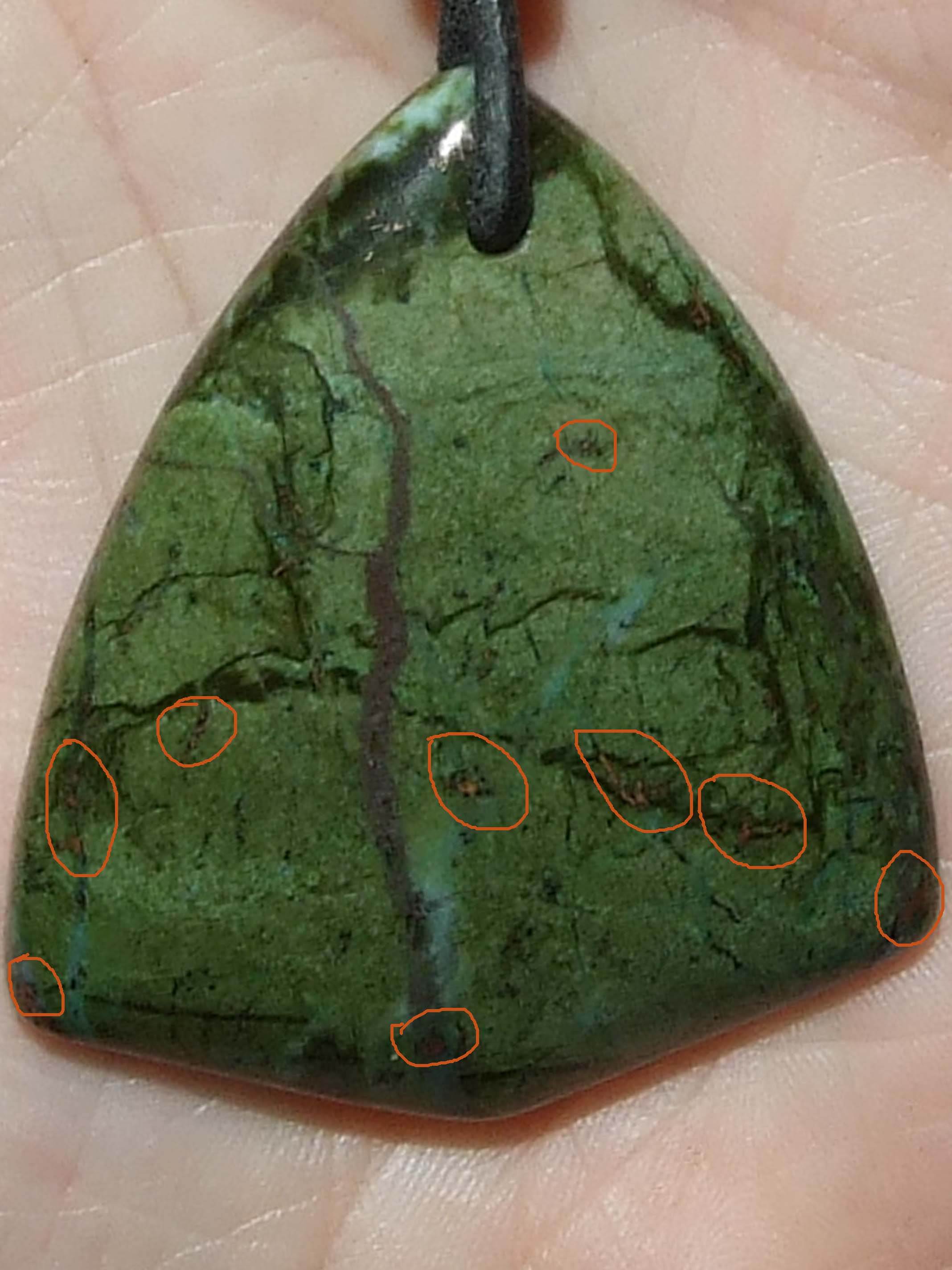 Ich habe mal diese drei Begriffe bei Google eingegeben und auf verschiedenen Seiten etwas darüber gefunden, z.B., dass auch Chlorid bei diesen Steinen mit auftreten kann, was auch solch eine Kupferfarbe hat. Naja, ich bin da noch zu unerfahren, das einzuschätzen.