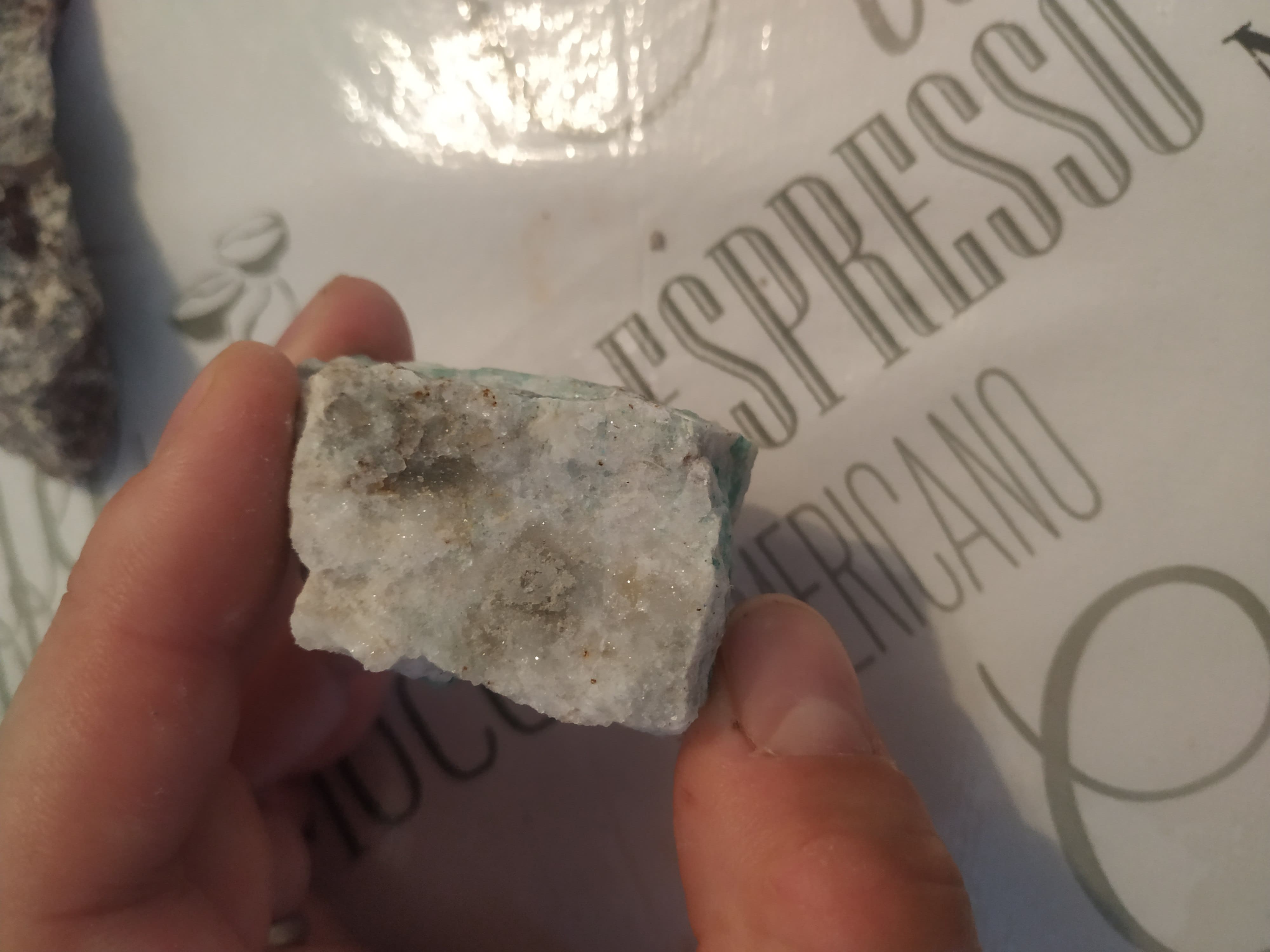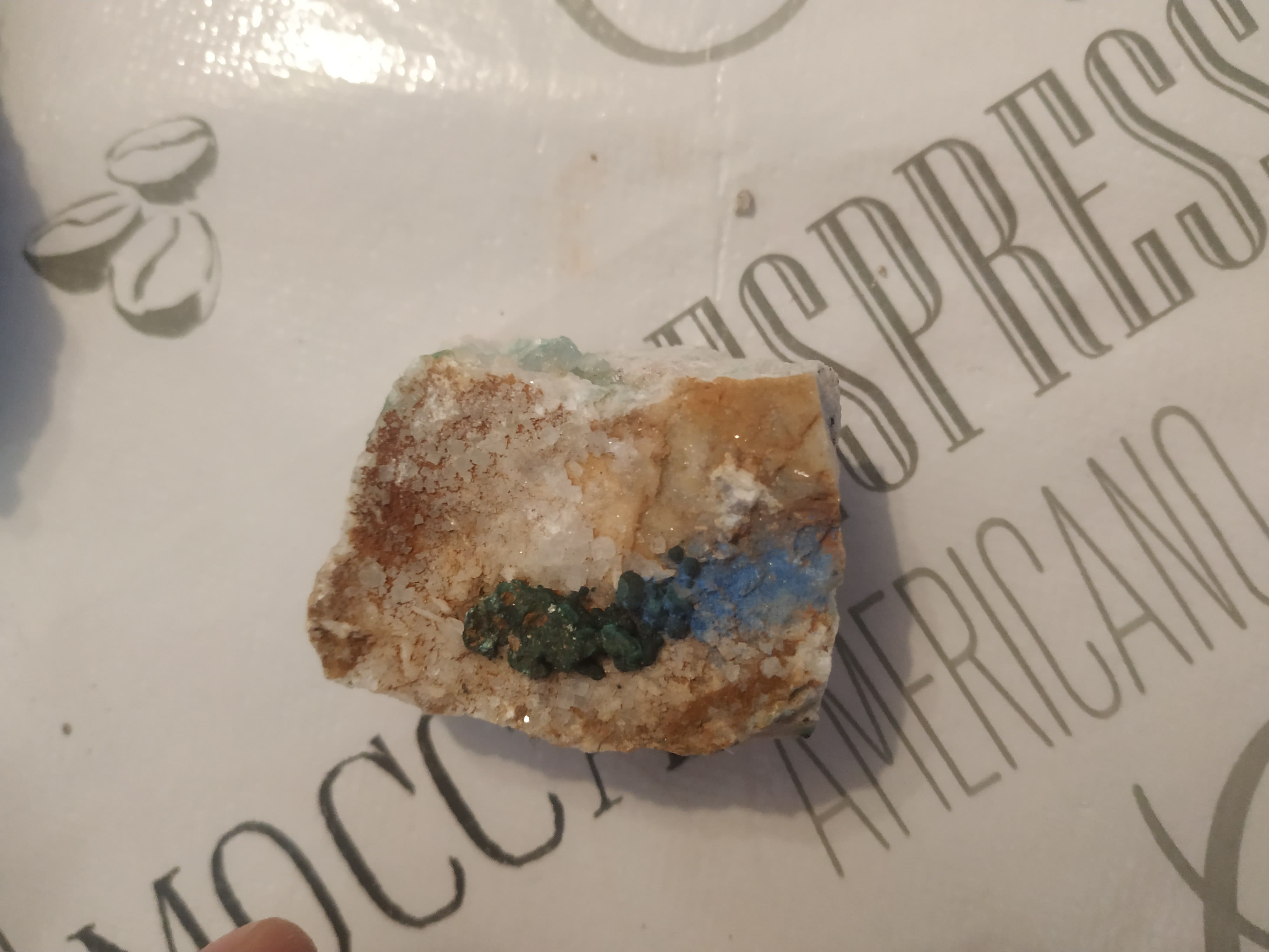 ich bin aktuell dabei, meine Steinesamlung aus Kindheitstagen zu verkaufen und habe bei einigen Steinen Probleme mit der Bestimmung. In diesem Fall habe ich hier einen Stein mit etwa 4cm Länge, 3cm Breite und 2,5cm Höhe. Der Stein hat die unterschiedlichsten Farben. Ich erkenne blau, dunkelgrün, hellgrün, glitzernde transparente Kristalle sowie eine dunkelgrüne Erhebung auf der Steinoberseite. Wäre super, wenn mir jemand weiterhelfen könnte!