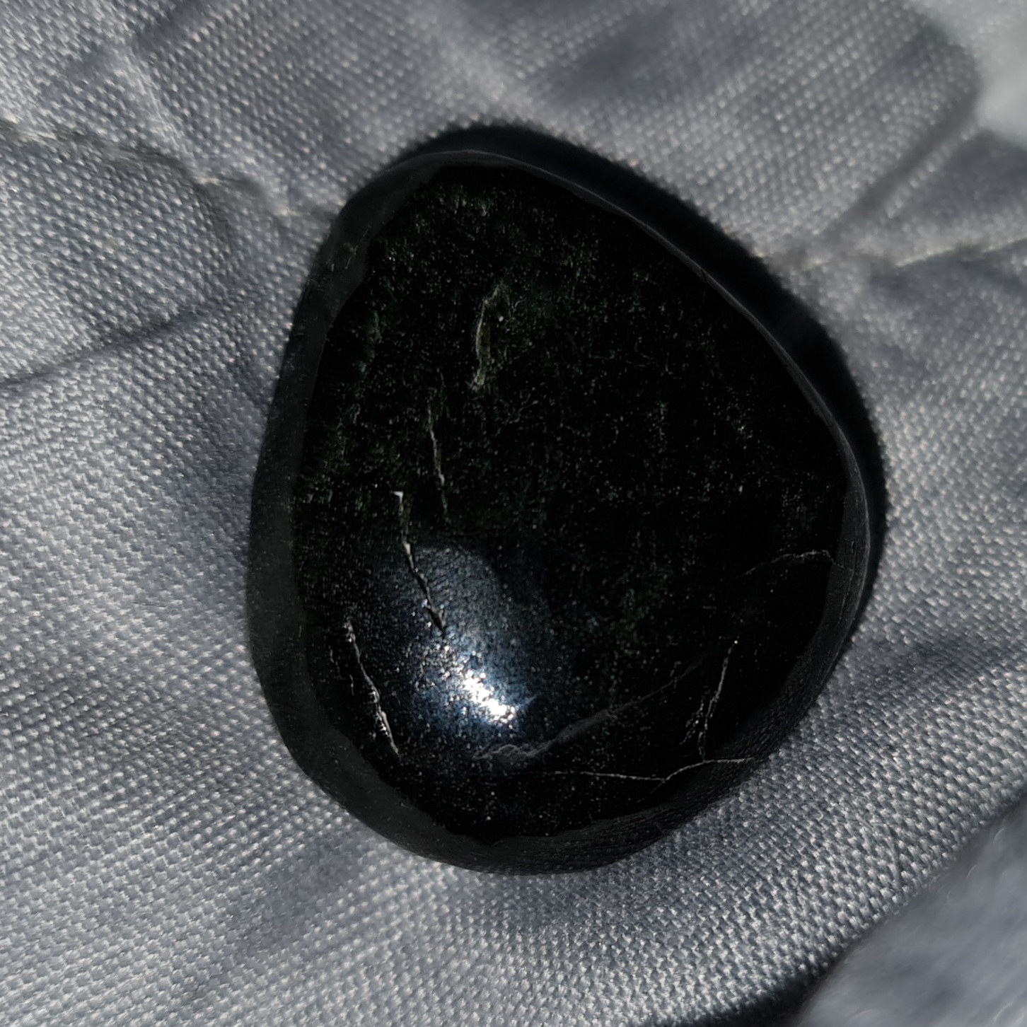 Nach denen scheint es ein Schörl zu sein. Nun habe ich bei Tageslicht noch mal versucht den Schimmer einzufangen, weshalb ich denke, es könnte doch ein Obsidian sein.