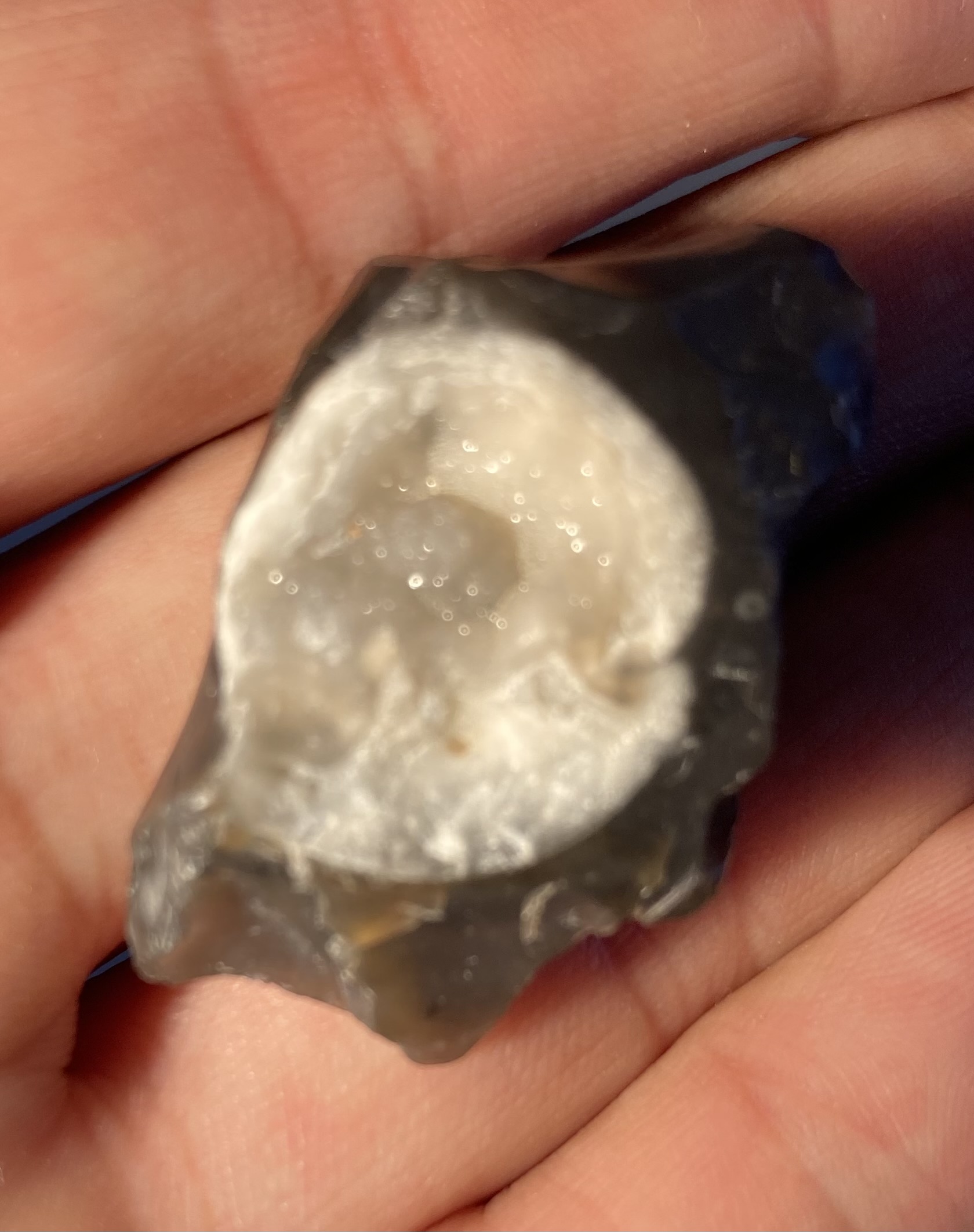 ja es ist ein Feuerstein. Aber haben die nich mal einen anderen Namen, wenn innendrin diese hellen (farblosen) Kristalle sind?