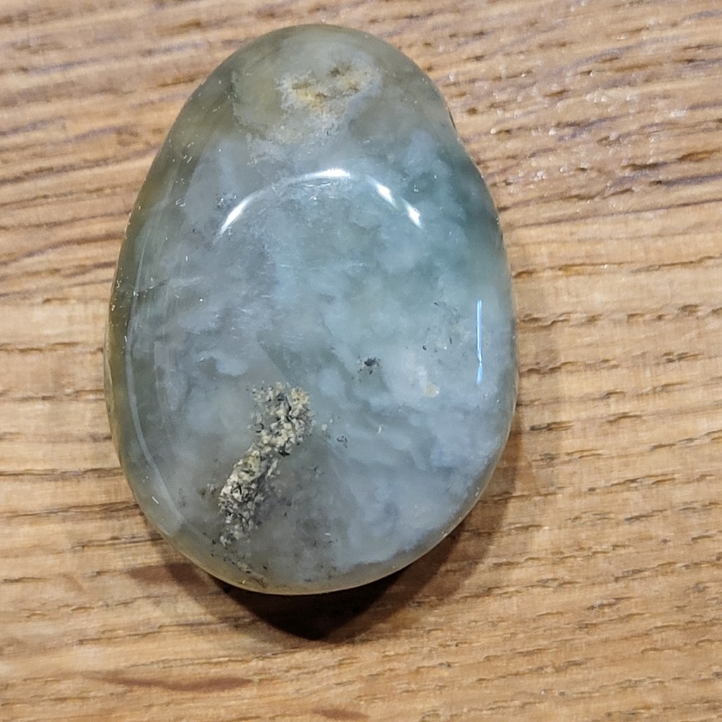 Nun kann man vielleicht ein Stück erwischt haben, bei dem diese Einschlüsse fehlen. Für mich sieht es schon nach Chalcedon aus, aber nicht nach einem sphärolitischen Chalcedon, welcher ein Ozeaner wäre. Ich schreibe bewusst nicht Ozeanjaspis. Bei diesem Stein hier erkenne ich auf den Fotos nichts, was nach Jaspis aussieht. Ich habe im Internet das hier gefunden. Kenne die Seite nicht, aber scheint recht reell zu sein, was die Infos zum Ozeaner angehen: