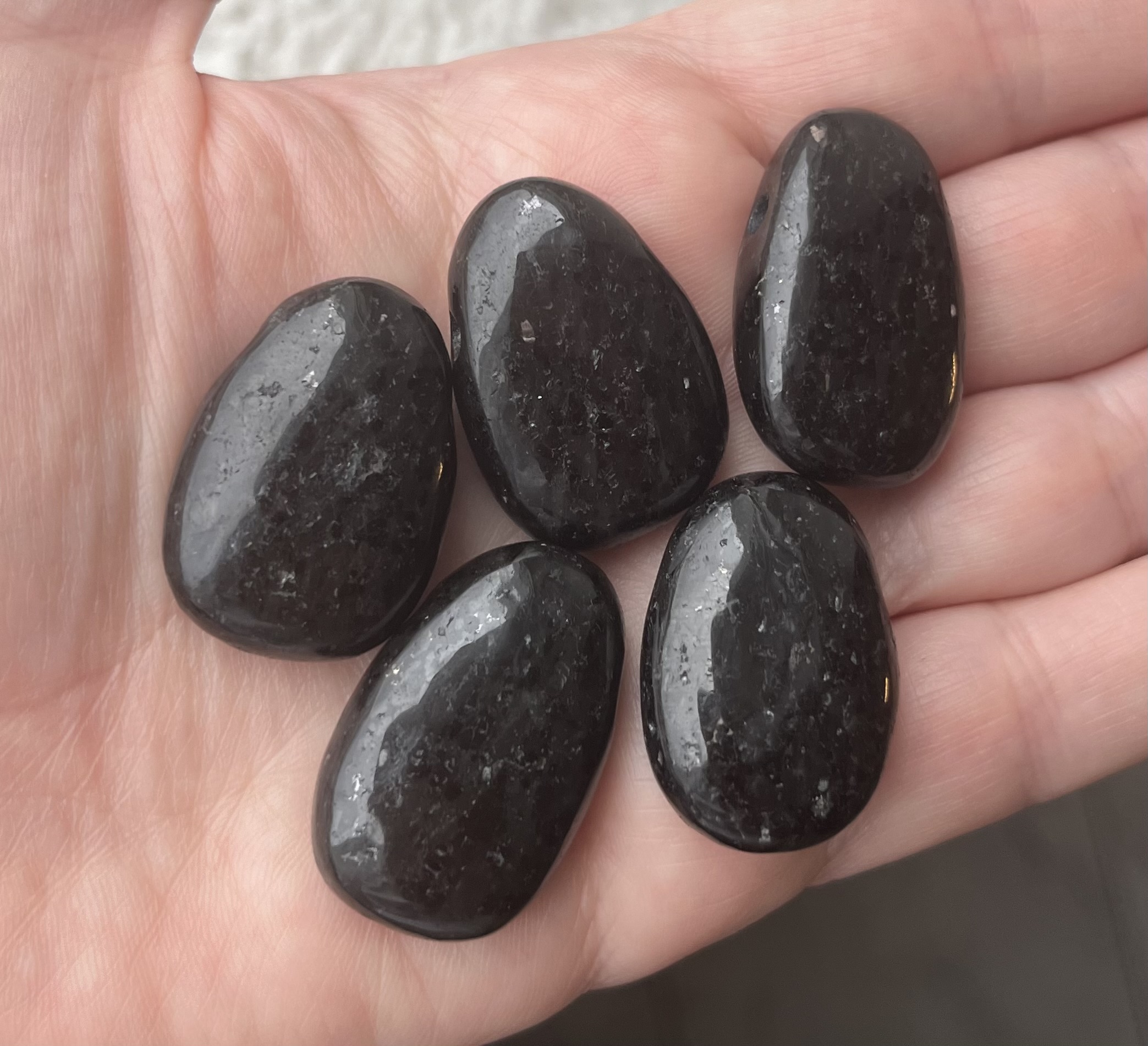 Was denkt ihr ist das für ein Stein? Beim Händler wurde dieser als Nuumit angegeben, jedoch bin ich der Meinung das es sich hier um einen Bronzit Gabbro handelt.