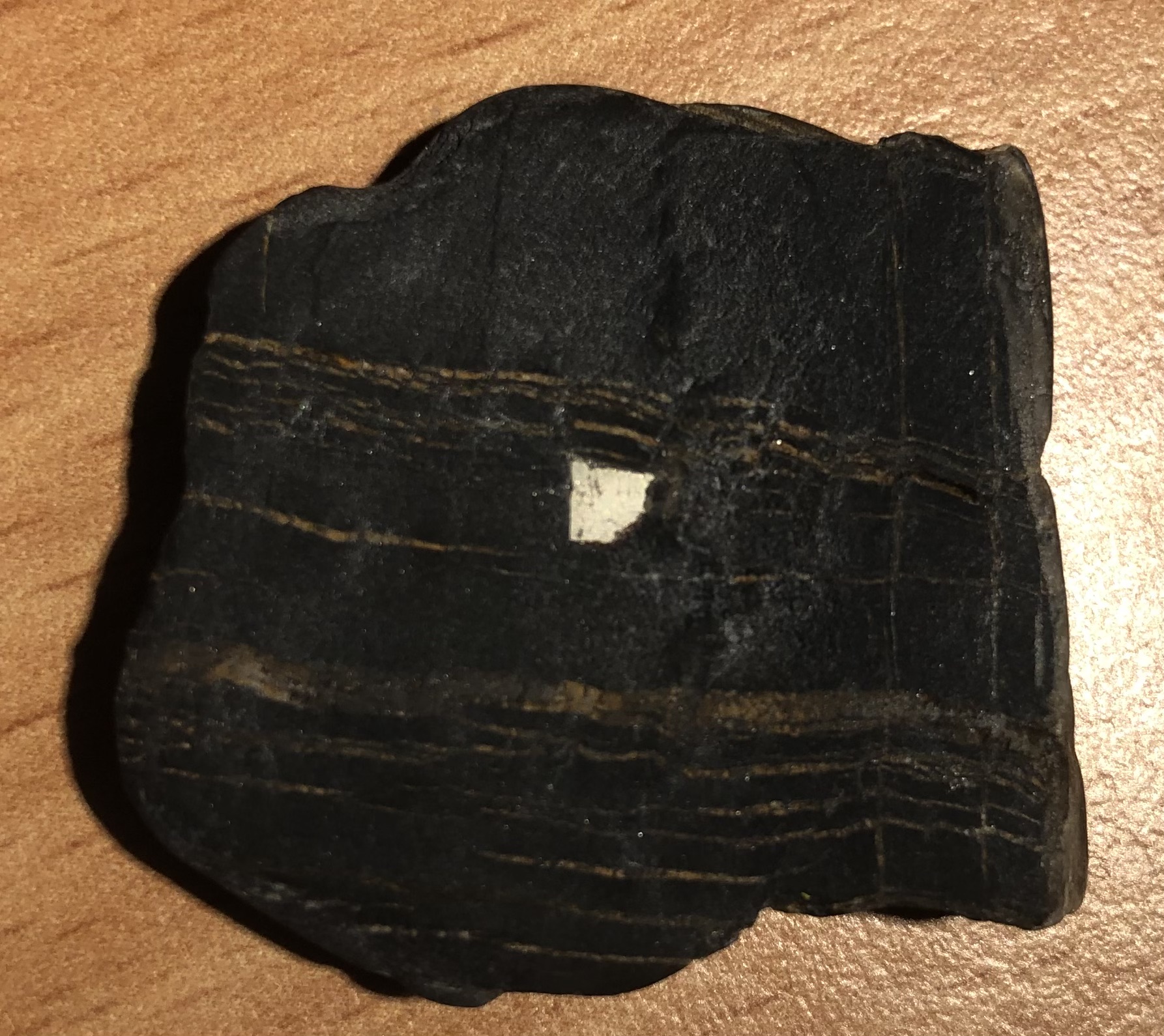 Hallo! Ich habe einen interessanten Stein mit einem Einschluss gefunden. Der Einschluss hat eine leuchtend gelbe, metallische Farbe mit einer roten Unterschicht. Der Einschluss ist ziemlich hart, ich konnte ihn nur mit einem Diamantbohrer einritzen. Die Größe des Steins beträgt 3/3/0,6 cm, das Gewicht 14 Gramm, die Einschlussgröße 3/3 mm. Was meinen Sie? Danke!