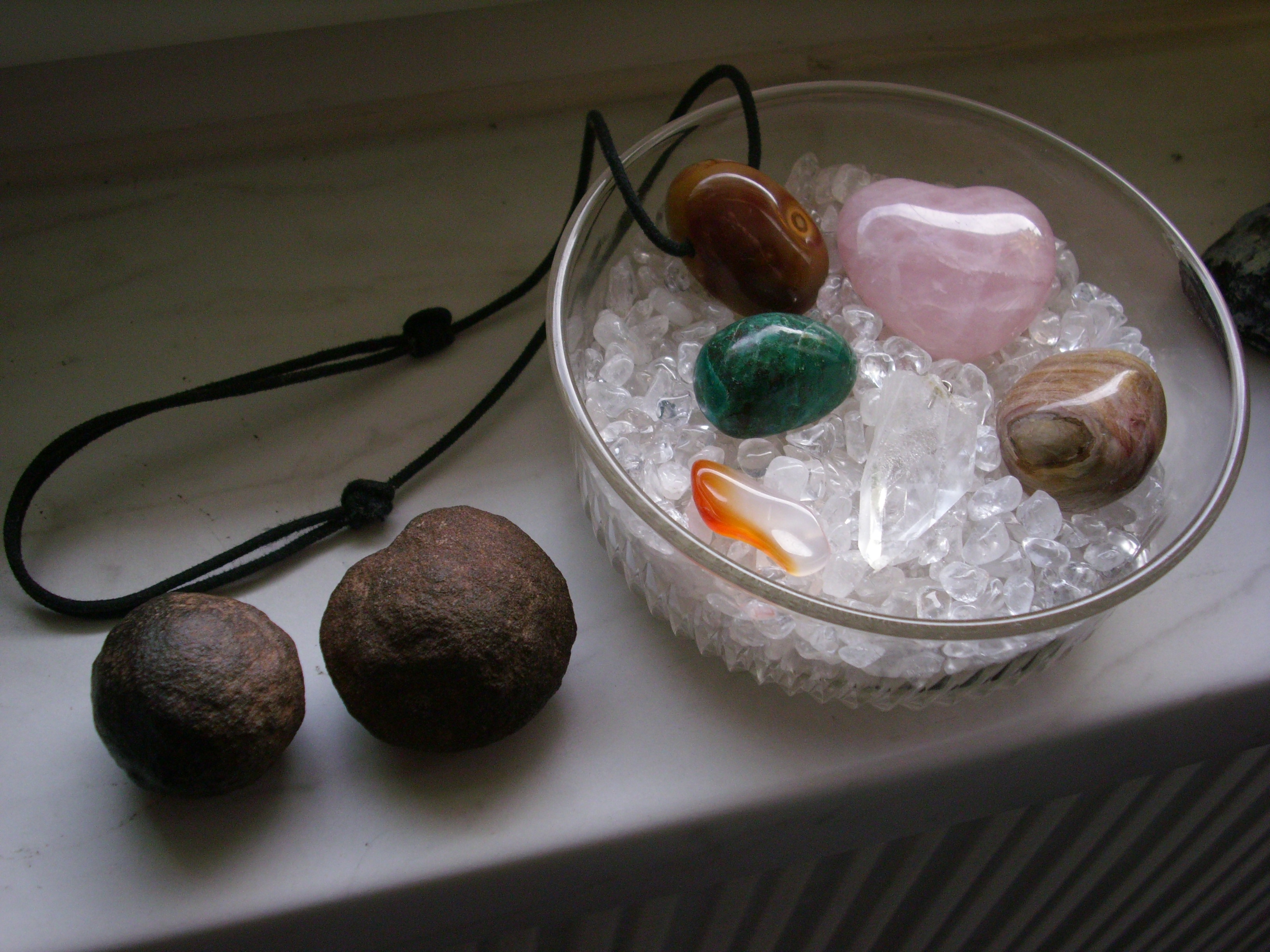 Ansonnsten habe ich noch einen Citrin (ein Foto davon habe ich im ABC gepostet) und einen weiteren kleinen Rosenquarztrommelstein. Aber die Beiden trage ich gerade um den Hals. Die wollten nicht mit auf das Foto.