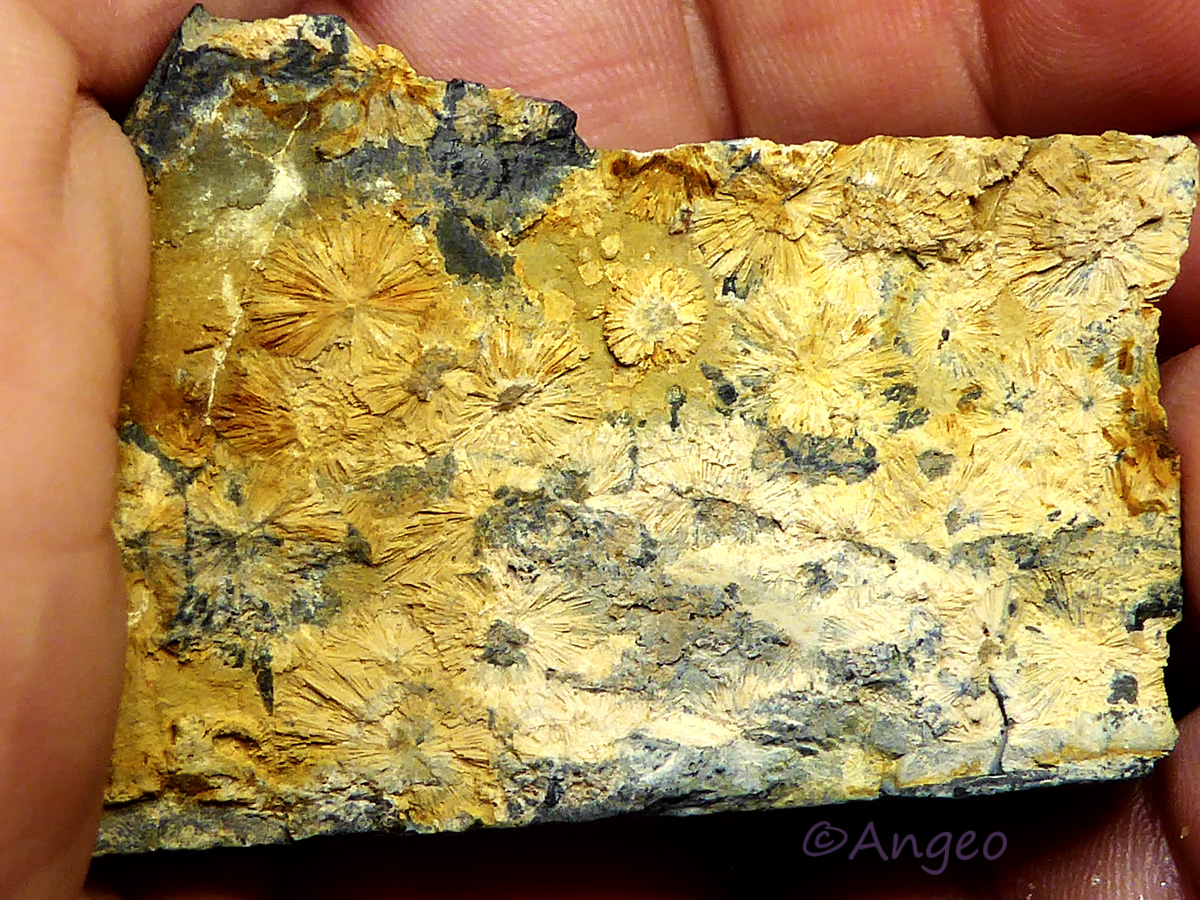 gelbliche radialstrahlige Cakoxenit - Kristalle