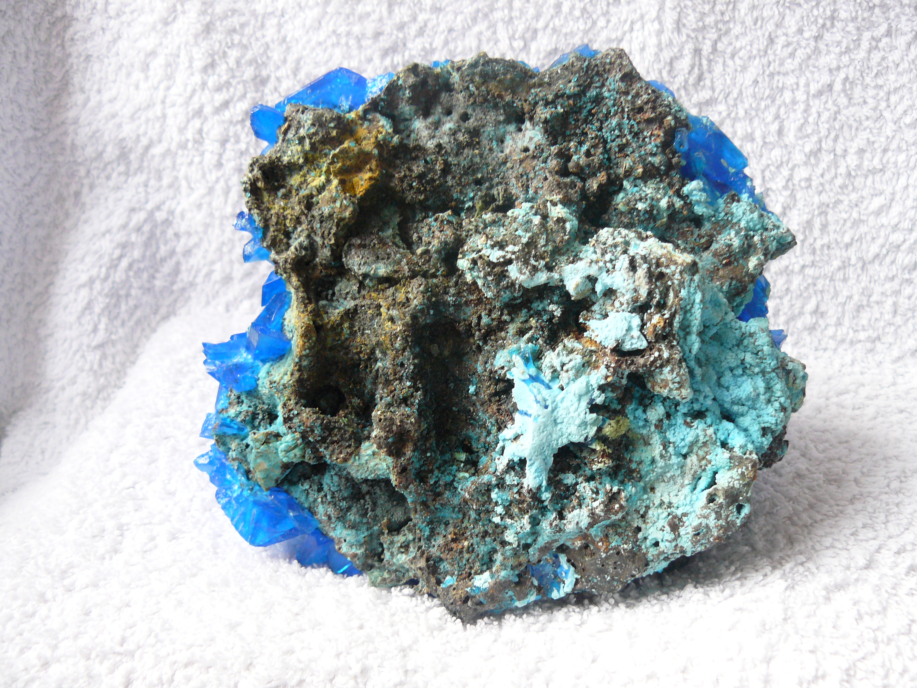 Ich denke die blaue stufe ist Chalkantit und giftig.Also aufpassen.