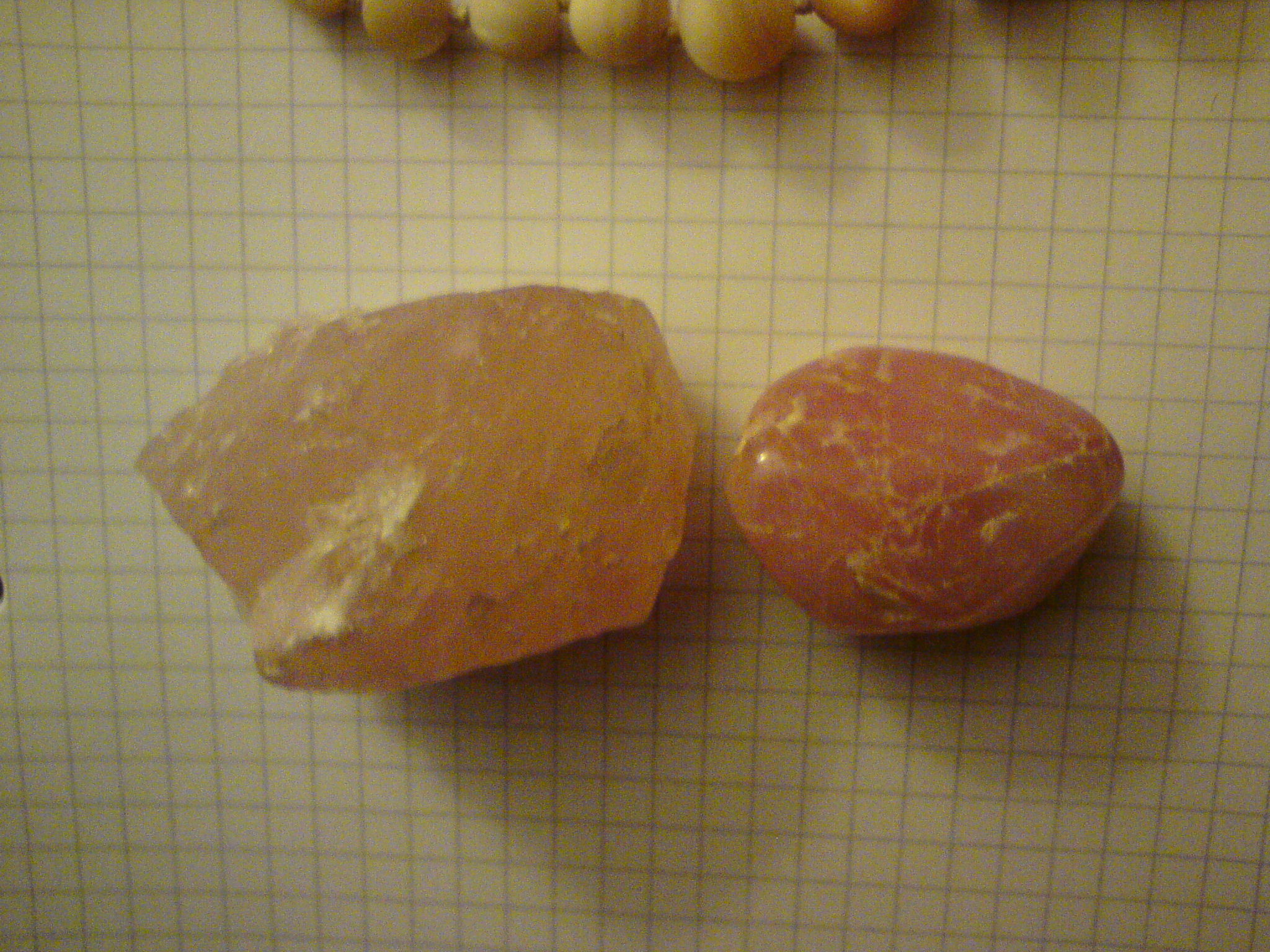 Also die beiden Steine der Rohstein und der Trommelstein das ist Rosenquarz und