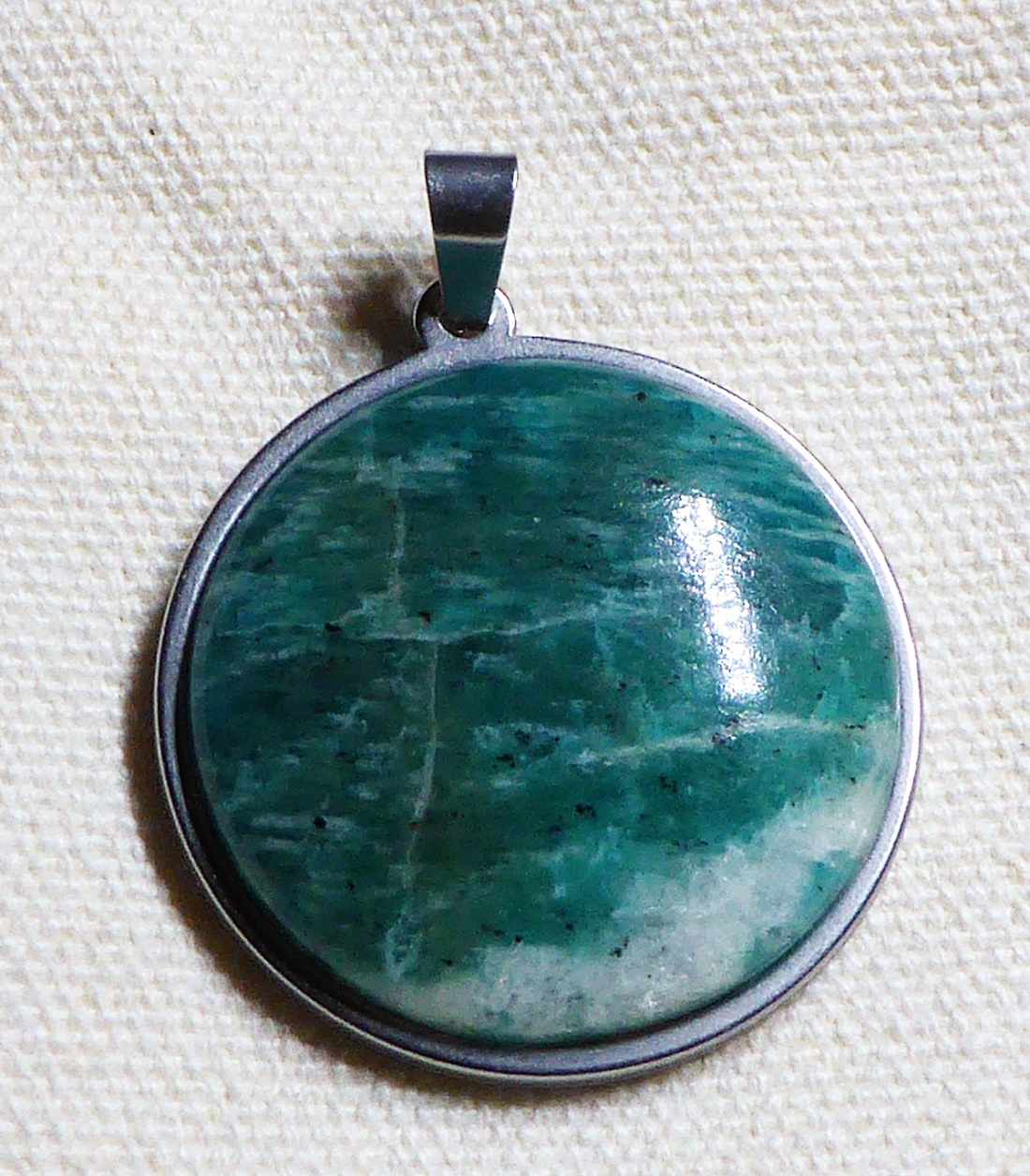 Hier mein Amazonit-Scheibenstein, der mir vorgestern sehr gute Dienste geleistet hat:
