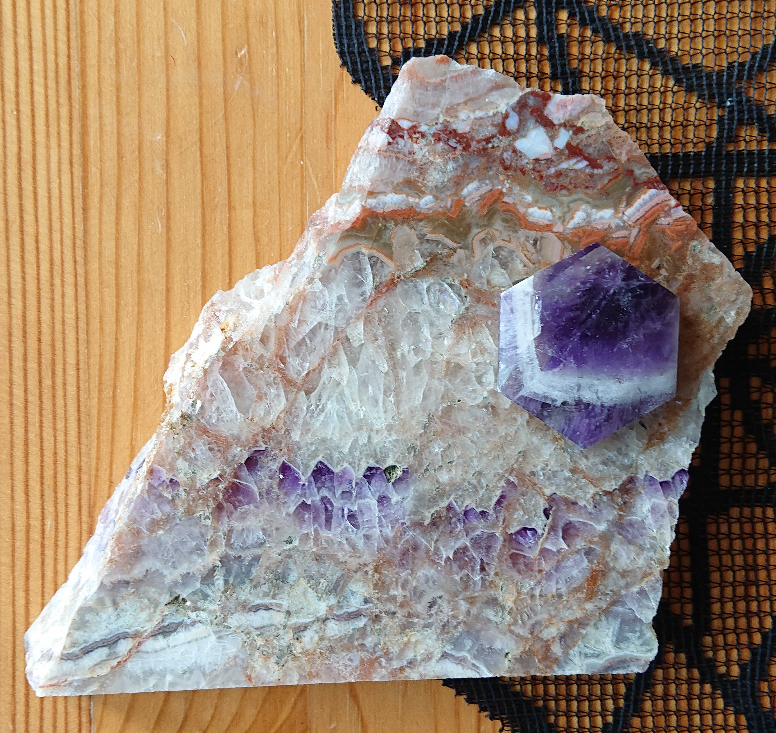 Unter meinen vielen Chevron Amethysten finden sich auch ein paar schöne Besonderheiten. Aus Sambia.