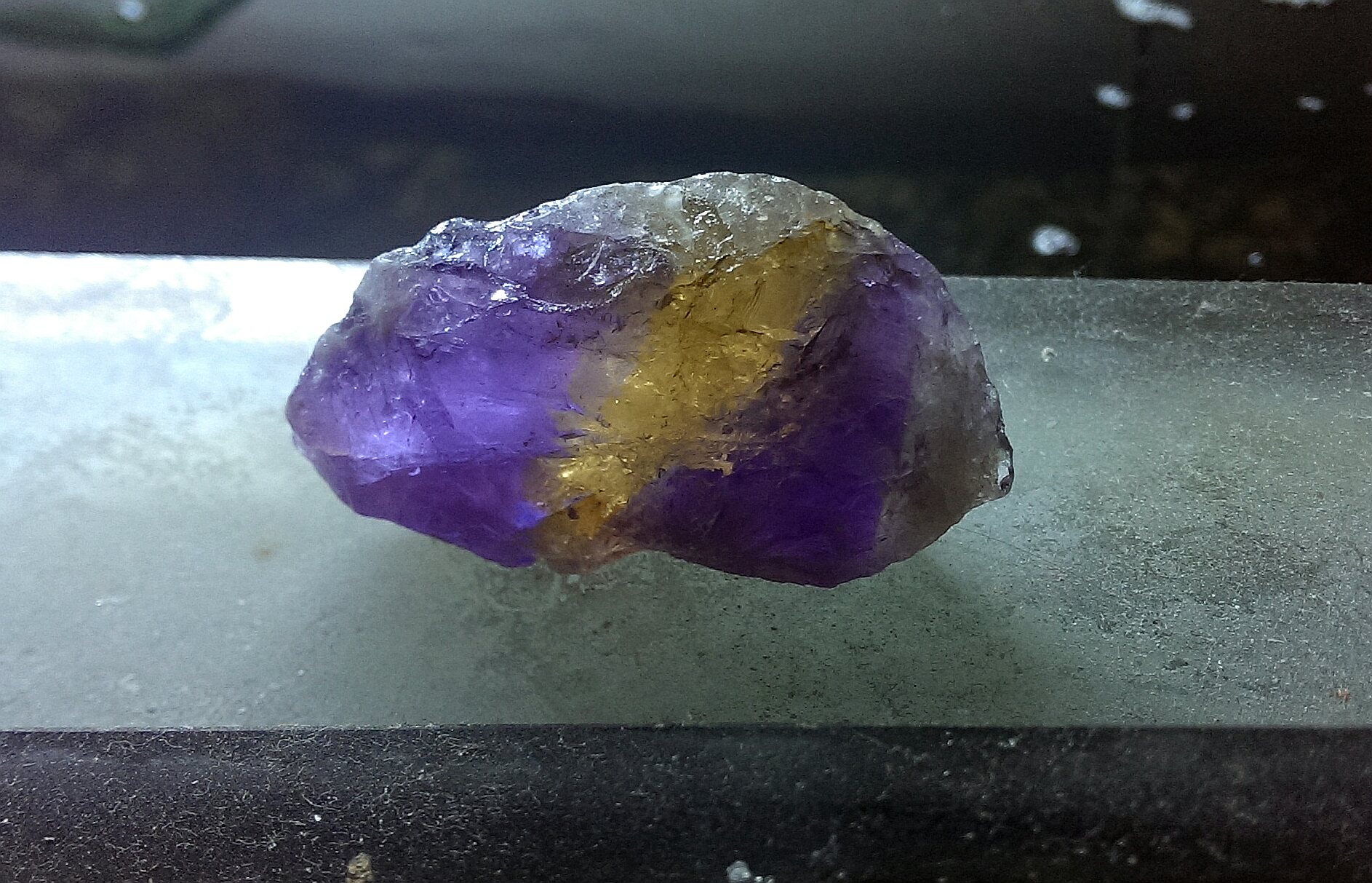 Mein kleiner Ametrin, leider nicht sehr intensiv in der Farbgebung: