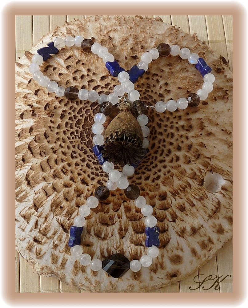 Farblich sollte passen: Bergkristall / Rosenquarz sowie weisse, cremefarbene evtl. auch orange Steine.