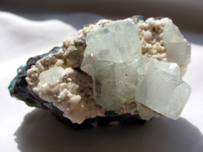 Stilbit, Prehnit , Skozelit, Zeolith, Datolith sowie Pektolith, sind bekannte Begleitminerale des Apophyllits.