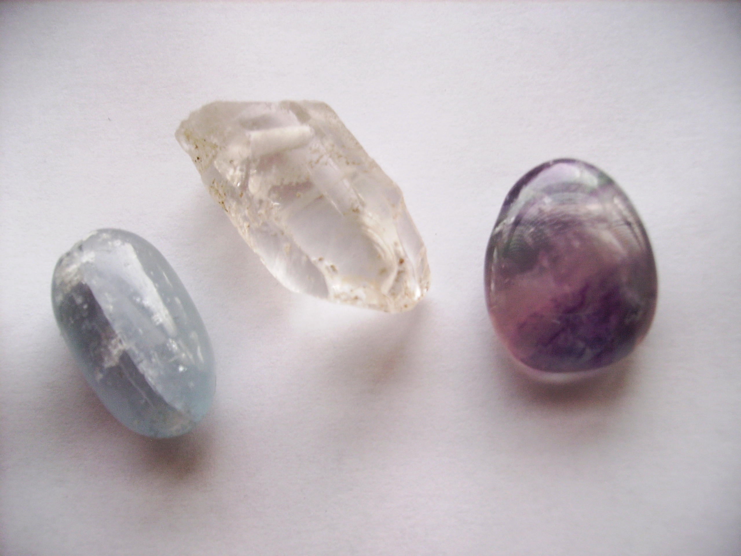 Ein himmelblauer Coelestin ( der kommt zu den kleinen Stufen ) eine wunderschöne Bergkristalspitze und ein zauberhafter Flourit