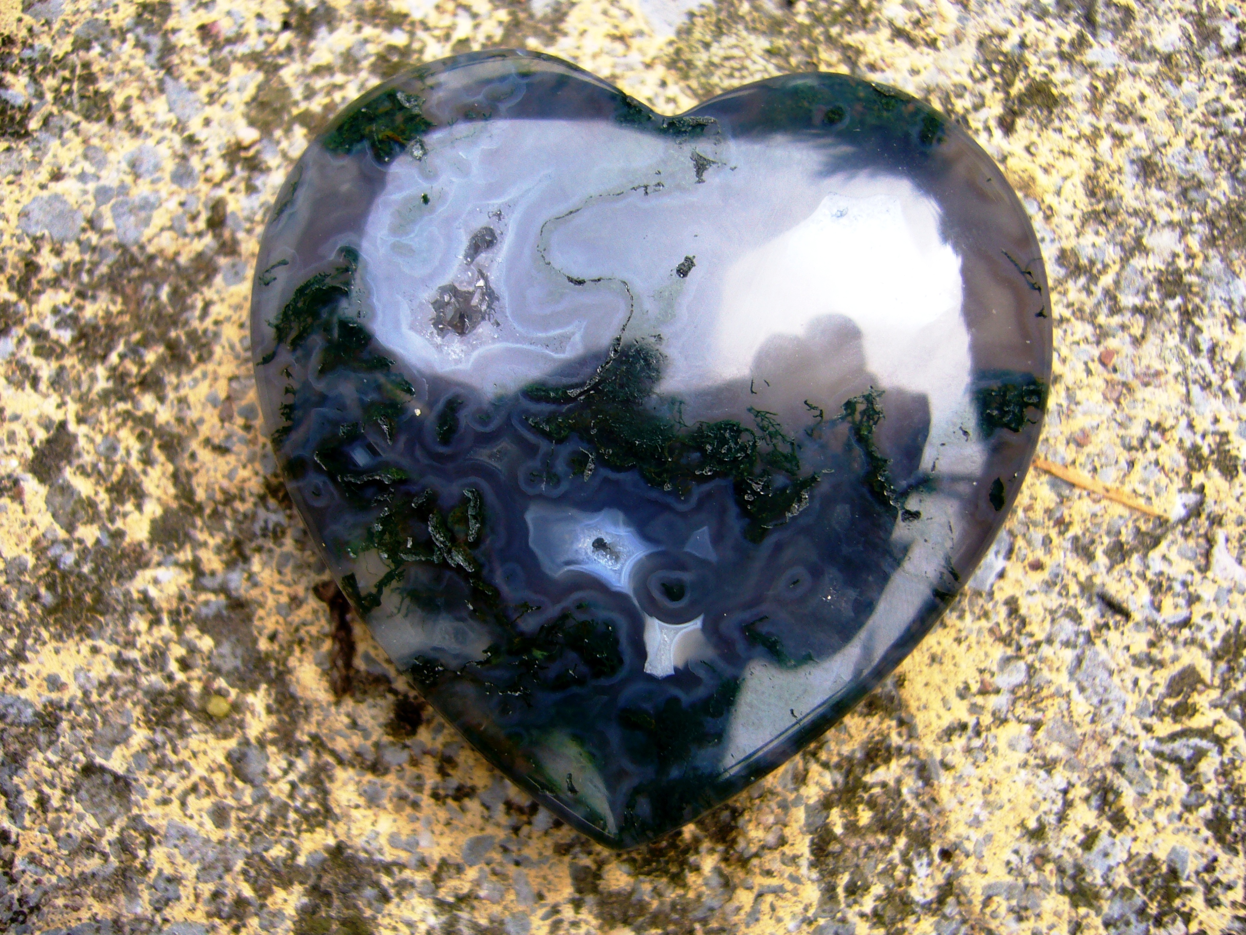 Ich hab ein supersuesses Moosachat-Herz bekommen und eine wunderschoene Granatkette, und Schokolade. Ich hab mich unglaublich gefreut und bedanke mich hier herzlich