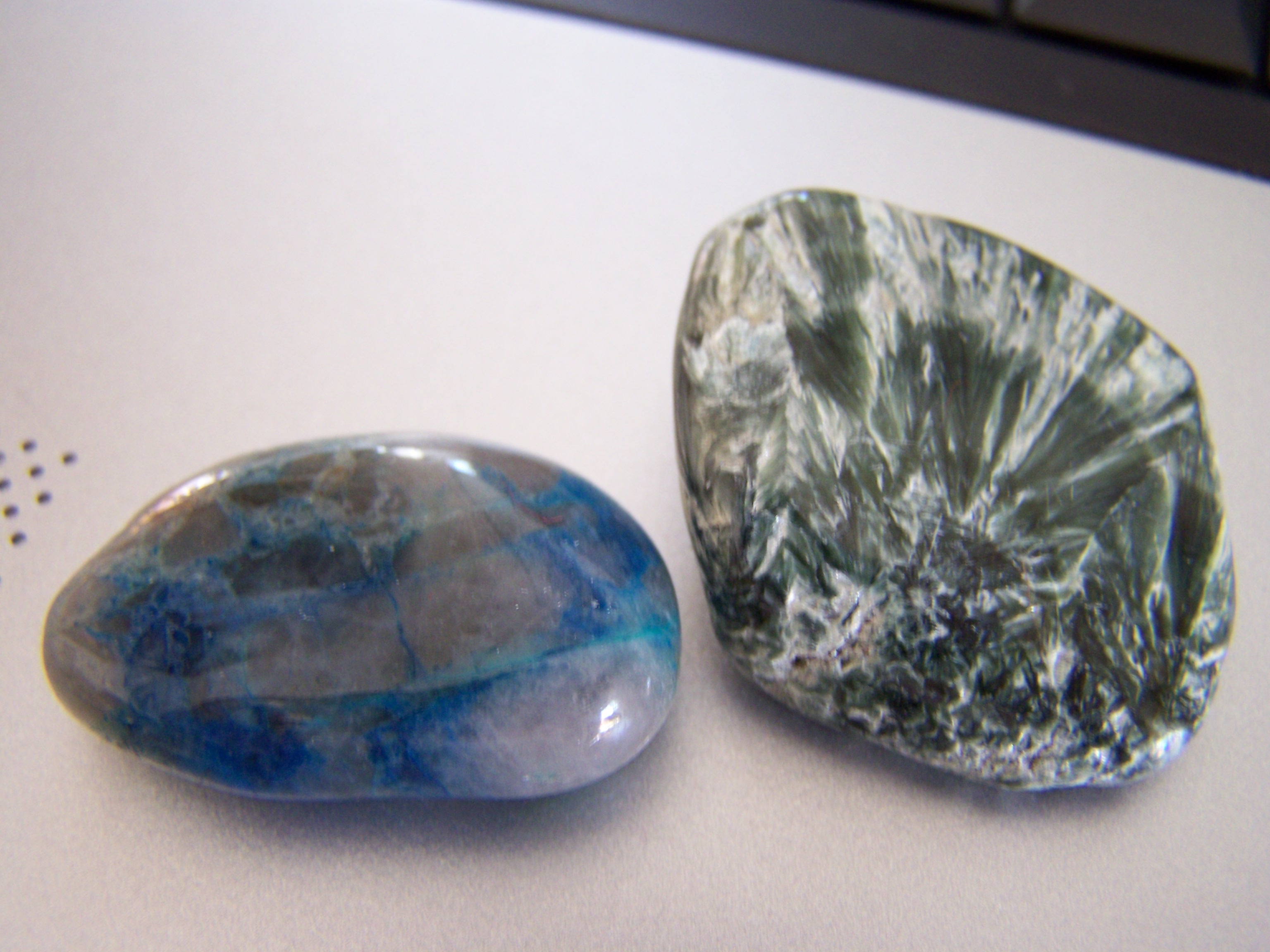Der blaue Stein ist ein Quantum Quattro und bei dem anderen handelt es sich um einen Serafinit.