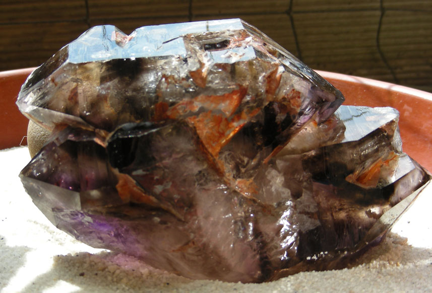 Rauchquarz mit Amethyst, Fundort Indien, Länge 13 cm, Mineralienmesse Bad Ems 2010