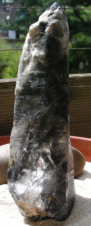 Rutilquarz, Einschlüsse evtl. Bitumen, Fundort Indien, Länge 11 cm, Mineralienmesse Bad Ems