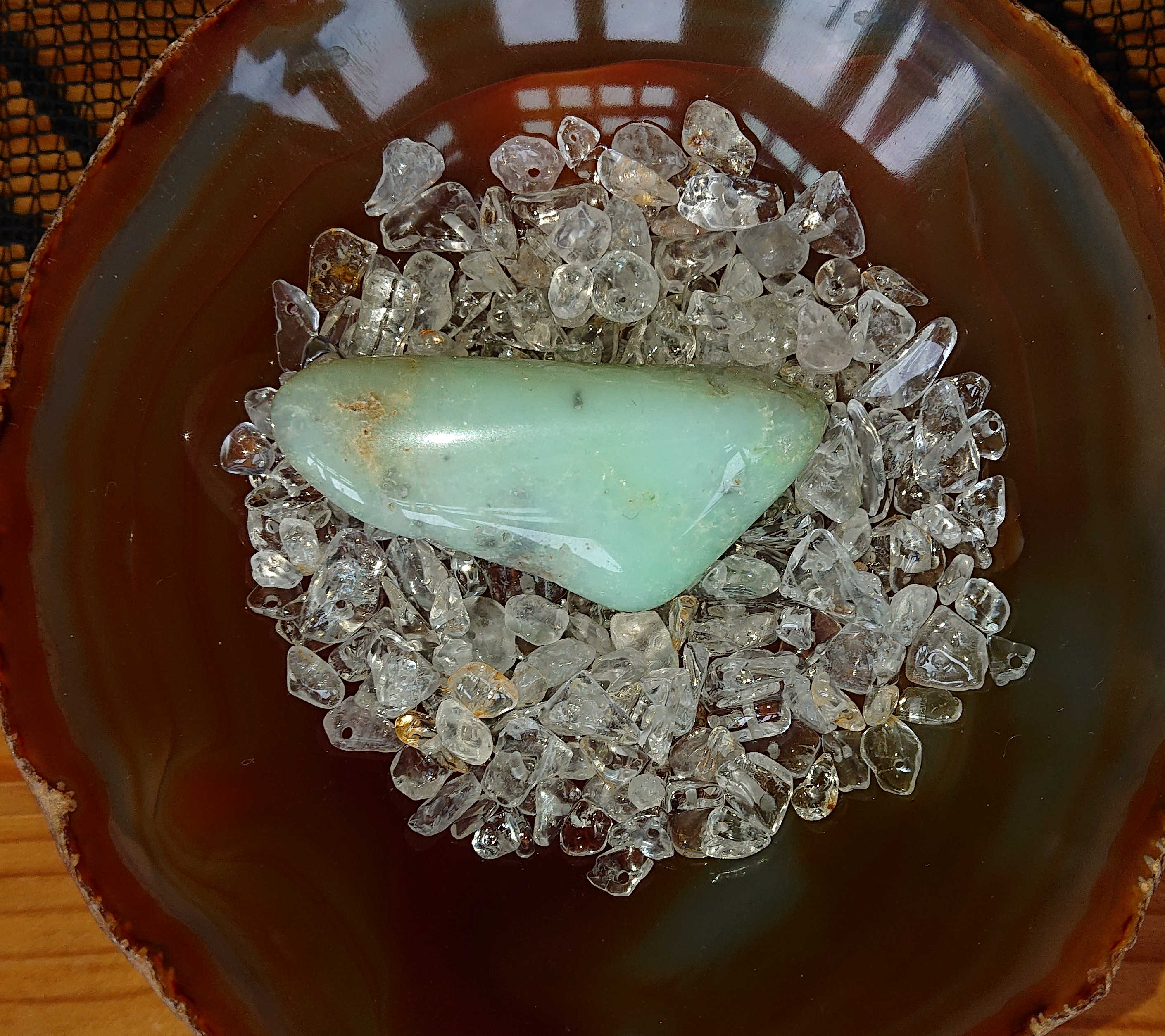 Mein Chrysopras - benutze ihn als Wasserstein zur Entgiftung (zusammen mit Bergkristall)