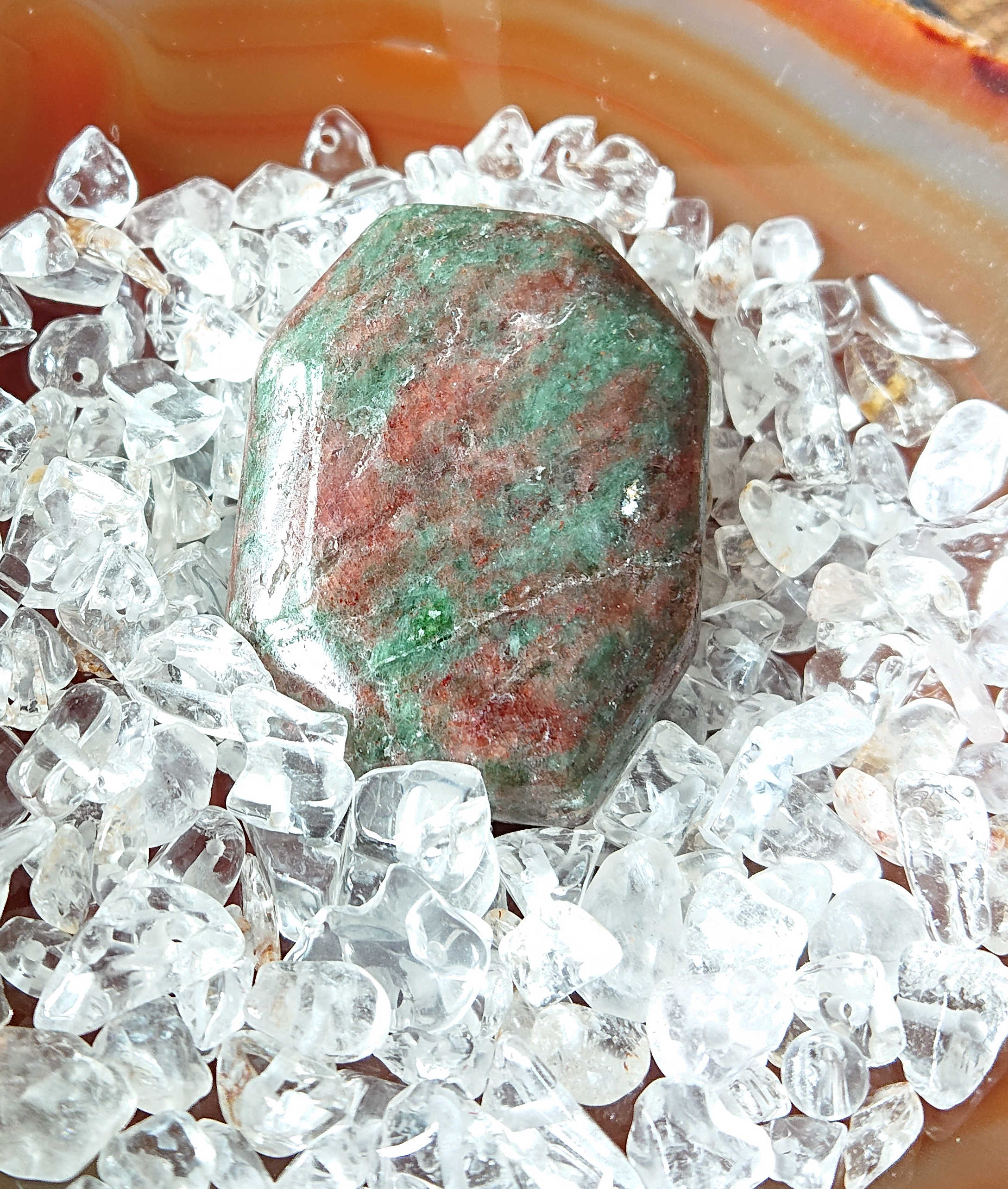 Der Stein sollte entweder als Anhänger oder als Handschmeichler über längere Zeit mit Hautkontakt getragen oder auf die Betroffenen Stellen aufgelegt werden