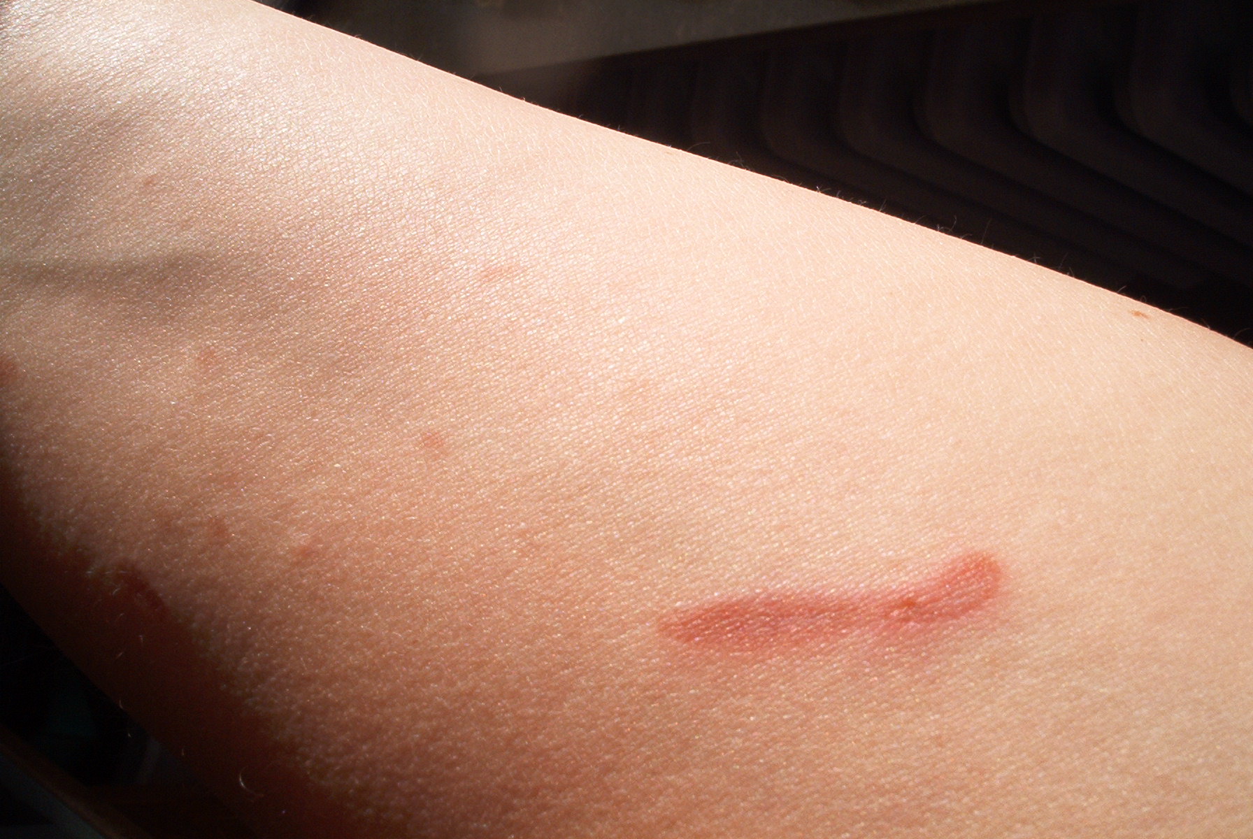 Das Bild zeigt nur die lange Wunde (ca. 5 cm lang). Die Kleineren, die weit oben liegen, sieht man auf diesem Bild nicht.