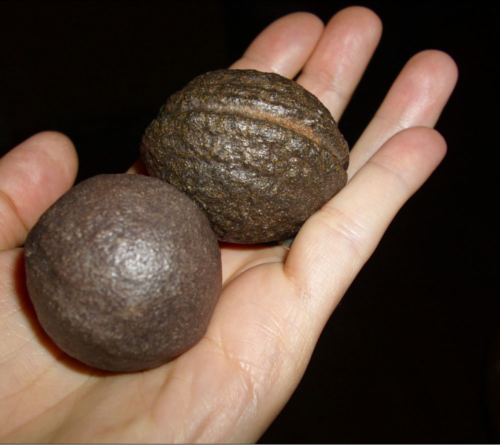 Hab eben mal meine zwei Moquis geschnappt und mal gewogen und gemessen. Sie sind (für meine kleinen Hände) gut Handfüllend, haben einen Durchmesser von fünf Zentimeter (Weibchen) und sechs Zentimeter (Männchen). Das Weibchen wiegt 98g und das Männchen 88g. Das Weibchen ist der Stein mit der glatteren Oberfläche und das Männchen ist der Stein mit dem "Gürtel" um