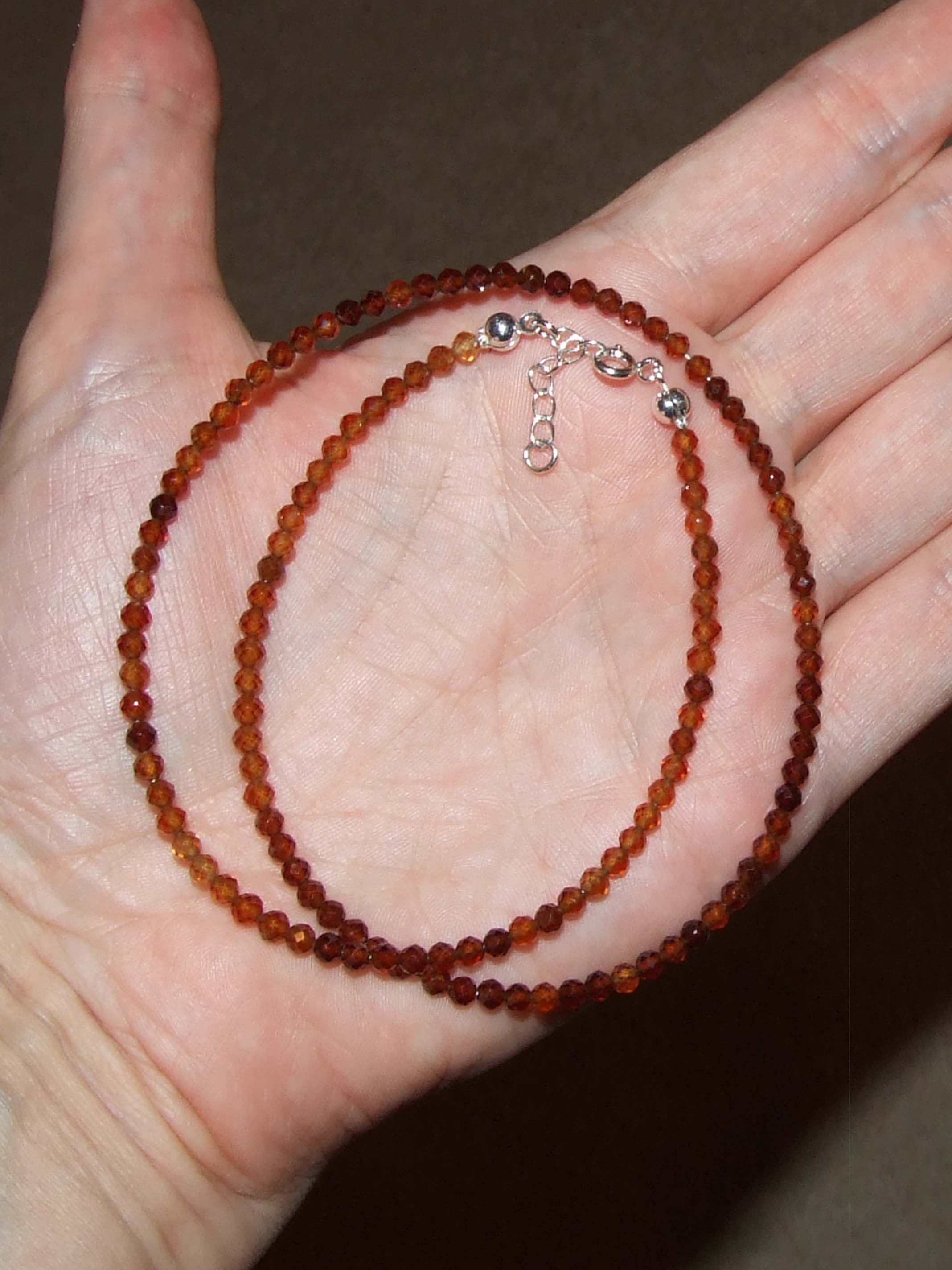 Jetzt darf es Mandaringranat sein als kurze Kette aus facettierten 3 mm großen Kügelchen.